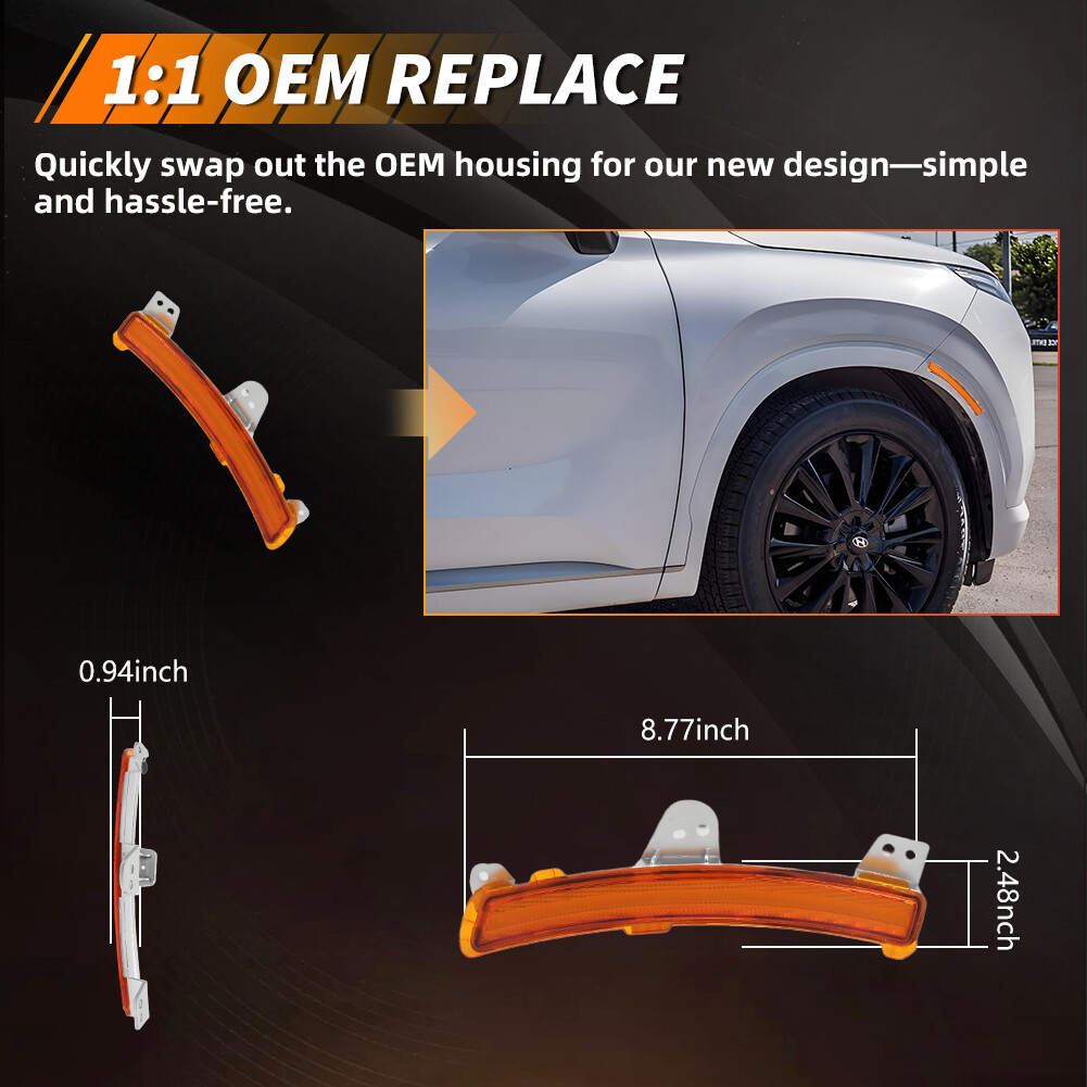 Product Detail Copyright©MotoringPlus Details This page features One Pair (2 Pieces) Amber Lens Front Side Marker Lights Kit For 2020-2022 Hyundai Palisade These lamps are made with high-quality Polymethy l Methacrylate (PMMA) and Polycarbonate (PC) plastics No modification required! Each piece is easy to install with an OEM fit, Instantly transform your car and give it a modern and trendy appearance and feel! Note: Bulbs & socket adapters are NOT included Specifications: 100% Brand new and quality Lens Color: Amber A complete set of two lamps, replacement for the driver side & passenger sides Compatible With 2020-2022 Hyundai Palisade Directly replace or repair your car's front side marker lamps CE DOT SAE approved Application: For 2021 Hyundai Palisade Ultimate For 2020-2022 Hyundai Palisade (submodel: Essential, Limited, Luxury, Preferred, SE, SEL) For 2021-2022 Hyundai Palisade (submodel: Calligraphy, Ultimate Calligraphy) Replace OEM # 921A2S8000, 921A1S8000; HY1085101, HY1084101 Please make sure you have available space in your car for these lamps to fit before placing o r der. Package include: 2PCS Driver & Passenger side Front Side M arker Lights (Amber Lens) Installation: Direct replacement the OEM parts without any modification needed Note: Professional installation is highly recommended! Returns Policy Shipping Policy Payment Method About US Contact Us Returns Policy Please check actual stock bulb model & housing size before purchasing replacement bulbs. Compatibility list on eBay listing is not a complete list and it is a known issue that there are errors on it. Half year warranty from the purchased date. Please contact us via ebay message before returning the defectived item. Our warranty does not extended to any products that are physically damaged or that are not under normal operating conditions as a result of misuse or improper installation on the buyers/user's part. Return items should include the original packaging and all accessories. Buyers MUST contact us for the returning address. In all cases, buyers pay shipping fees at their own cost to return products for exchange or refund. We will be responsible for the postage of replacements. Refund will be made upon receipt of the returned item. Our goal is to make sure you are a happy buyer and pleasant shopping with us. If you have any problems, please contact us immediately before leaving us any negative or neutral feedback. We understand the concerns and frustrations you might have, and will do our endeavor to resolve the issues. Please give us the opportunity to resolve any problem. Shipping Policy Item will be shipped from China / Hongkong Post by Standard International Post. All orders will be shipped to buyer's paypal shipping address within 24 hours after receiving your verified payment (Excluding Weekends and Public Holidays) International order may takes about 15-25 business day delivery time for most countries. Transactions on weekends or public holidays,item will be sent later on work time. Payment Method We accept Paypal ONLY. Unpaid transaction will be cancelled after 8 days About US Contact Us We are dedicated to providing you the best shopping experience and high quality items at a very low price. If you are satisfied with our service,Please remember to leave us 5 STAR for All Detailed Seller Ratings If you found any problem/issue of our merchandise/service,please let us know before leaving any negative feedback! Please feel free to contact us if you have any question. Any message will be replied within 24 hours. We will try our best to help! Home Payment Shipping About us Contact us Copyright©MotoringPlus Home Payment Shipping About us Contact us Store Categories Store Categories SIDE MARKER LIGHT TURN SIGNAL LIGHT TAIL BRAKE LIGHT LICENSE PLATE LIGHT DECODER OTHERS Other Product Detail Copyright©OFFKAT Why Buy From Us Why Buy From Us Details This page features One Pair (2 Pieces) Amber Lens Front Side Marker Lights Kit For 2020-2022 Hyundai Palisade These lamps are made with high-quality Polymethy l Methacrylate (PMMA) and Polycarbonate (PC) plastics No modification required! Each piece is easy to install with an OEM fit, Instantly transform your car and give it a modern and trendy appearance and feel! Note: Bulbs & socket adapters are NOT included Specifications: 100% Brand new and quality Lens Color: Amber A complete set of two lamps, replacement for the driver side & passenger sides Compatible With 2020-2022 Hyundai Palisade Directly replace or repair your car's front side marker lamps CE DOT SAE approved Application: For 2021 Hyundai Palisade Ultimate For 2020-2022 Hyundai Palisade (submodel: Essential, Limited, Luxury, Preferred, SE, SEL) For 2021-2022 Hyundai Palisade (submodel: Calligraphy, Ultimate Calligraphy) Replace OEM # 921A2S8000, 921A1S8000; HY1085101, HY1084101 Please make sure you have available space in your car for these lamps to fit before placing o r der. Package include: 2PCS Driver & Passenger side Front Side M arker Lights (Amber Lens) Installation: Direct replacement the OEM parts without any modification needed Note: Professional installation is highly recommended! Returns Policy Shipping Policy Payment Method About US Contact Us Returns Policy Our 60-day Satisfaction Guarantee assures our customers that they will receive all orders promptly and exactly as described. In addition, it allows customers to return new and unused products in their original factory condition for any reason within 60 days from the date of purchase. Buyers are responsible for appropriate packing, returning shipping cost, insurance and returning the item in "new" condition. Used items will not be accepted for return. We will replace the returning item with an identical item, issue a full store credit or a full refund. Our goal is to make sure you are a happy buyer and pleasant shopping with us. If you have any problems, please contact us immediately before leaving us any negative or neutral feedback. W
