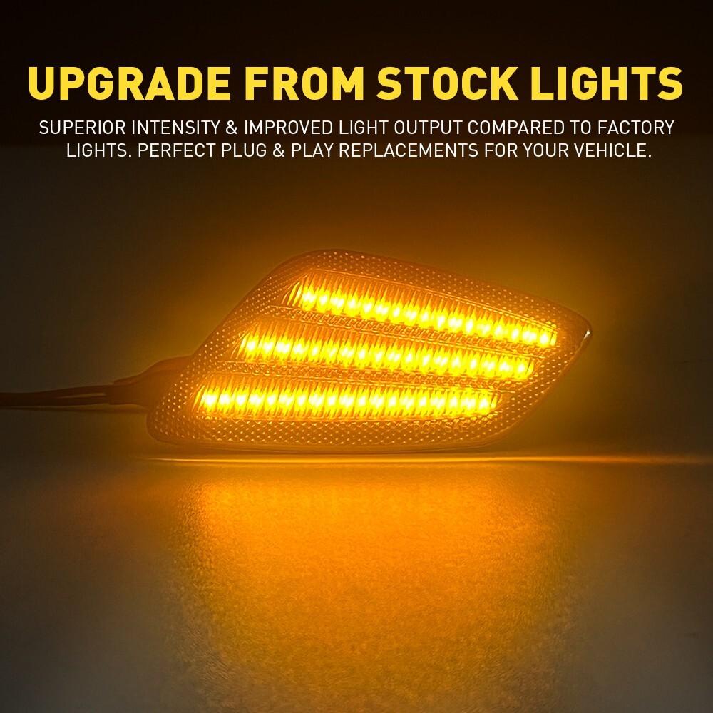 These smoked LED fender marker lights look fantastic on my Jeep! The amber glow is bright but not overpowering, and the smoked housing gives it a sleek, modern upgrade. Installation was a breeze—perfect fit for my TJ. Super durable and waterproof, just what I needed for off-road adventures. Highly recommend!
