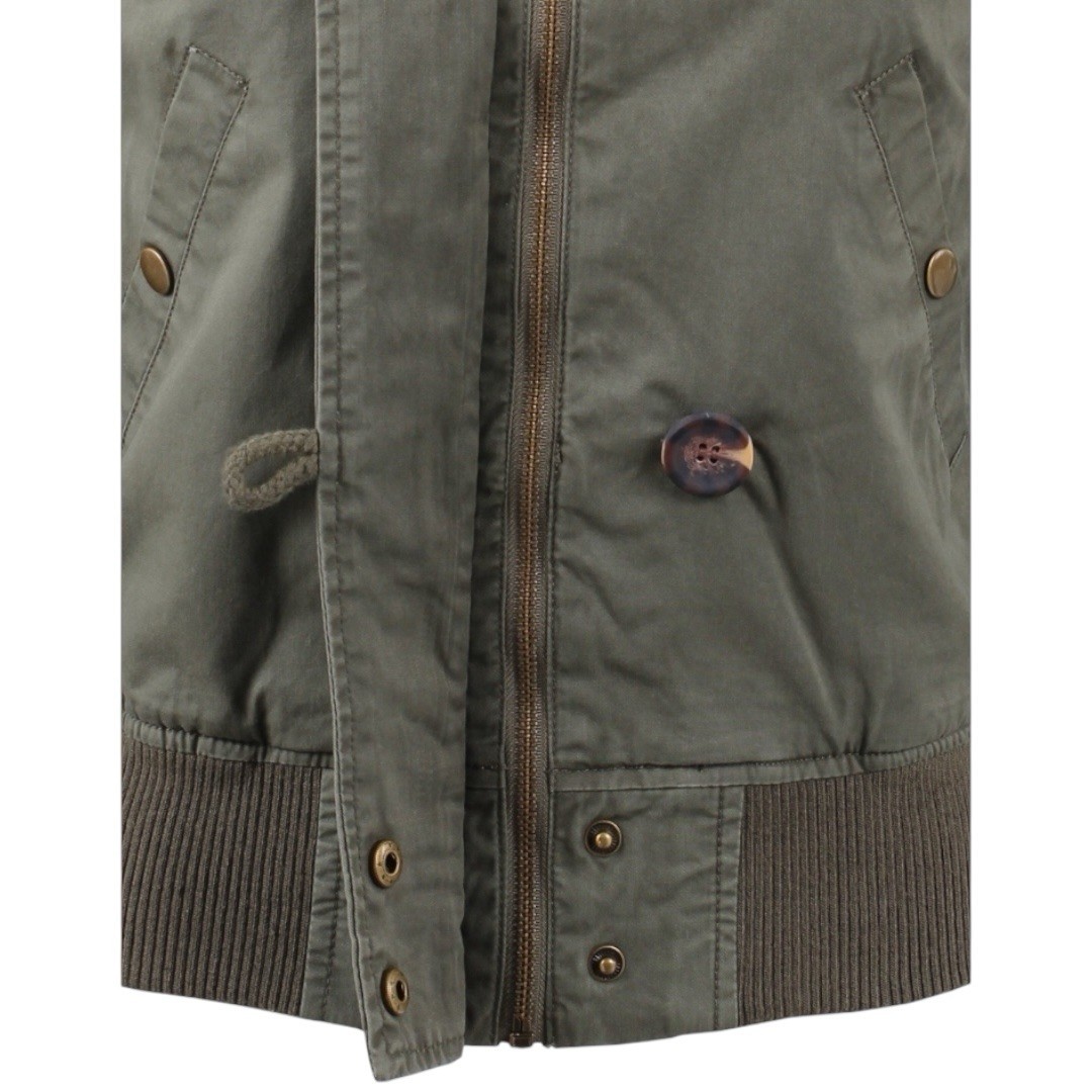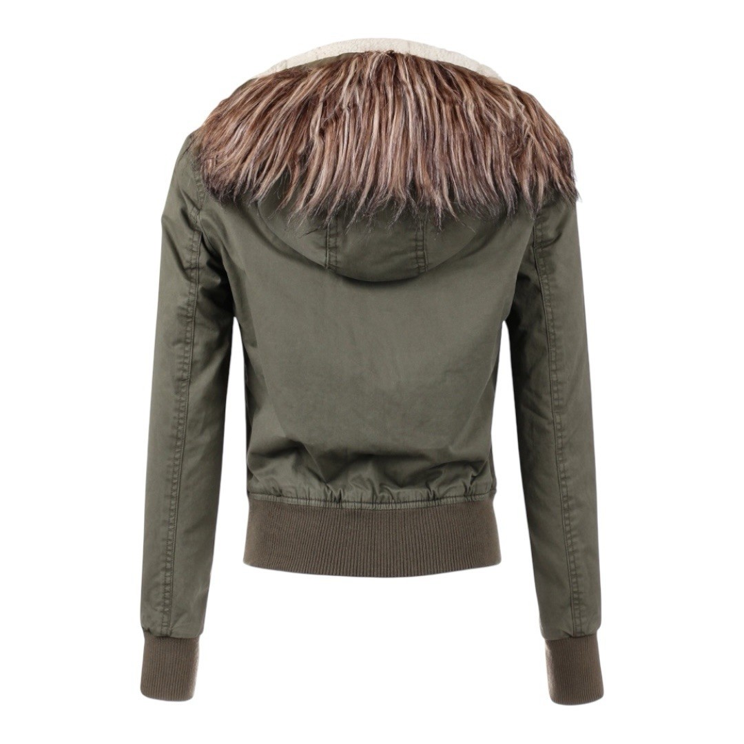 Ambiance Apparel Y2K Fitted Olive Green Bomber Jacket with Faux Fur Hood – Size S Classic early-2000s vibe. This Ambiance Apparel jacket has that super-fitted Y2K bomber look with utility-style details. It has a zip front with loop-hook button closures, long sleeves, functional pockets, and a soft faux-fur lined hood. The cut is very flattering and fitted, just like the popular Y2K jackets everyone is hunting for. • Size Small (fitted Y2K silhouette) • Outer: 100% cotton • Lining: 100% polyester • Zipper front with loop-hook buttons • Faux-fur lined hood • Functional pockets • Soft, cozy lining Condition: Very good pre owned condition, no flaws, just some minor wear to the faux fur on the hood #y2k #bomber #utility #fauxfur #jacket