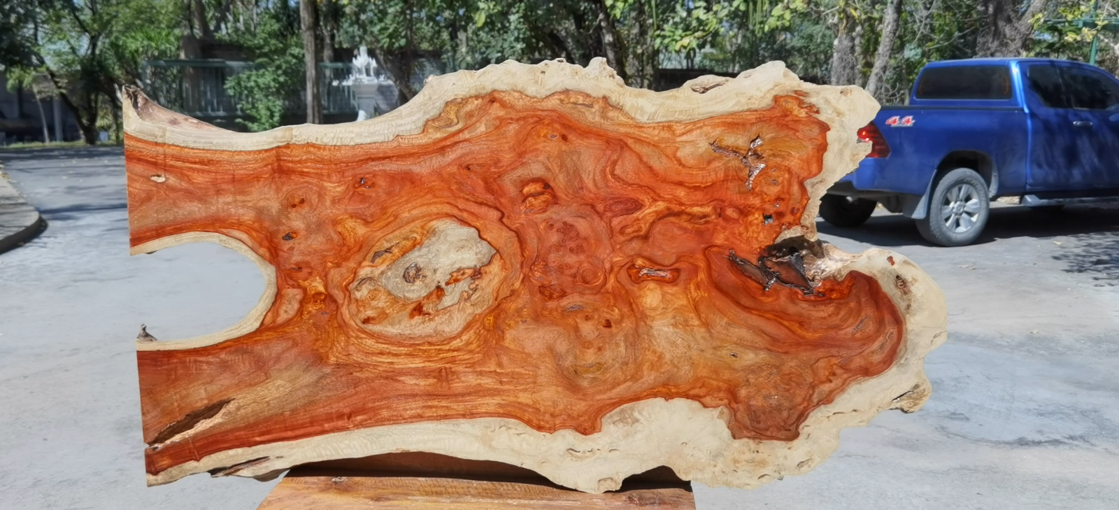 The wood is absolutely beautiful, and I can’t believe how fast it reached the USA once it shipped. Packaging was outstanding, however part of the burl did break. Not because of packaging I think it was as handled roughly somewhere during shipping. I was able to glue the piece back together. Definitely worth the price and this seller is excellent at communication! Will definitely buy from him again!