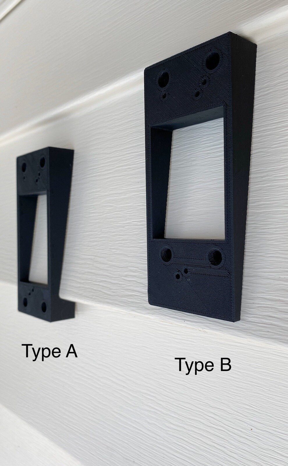 Type B mounting bracket Type A bracket is here - http://ebay.us/aBt4Y5?cmpnId=5338273189 Siding mounting bracket wedge (25º) for Amcrest Video Doorbell. Condition is New. 3D printed. There is no original part available on the market. This bracket consists of 2 parts which can be used separately on flat walls for 25º angled view, on siding for straight view or together on siding for 25º view. Please see pictures. Easy to assemble, no glue needed. If you need just base part to install Amcrest doorbell on siding for a straight view you can buy it separately. Available brackets: 15º, 25º, 35º for left and right side •NOTE: This is for doorbell to be mounted on the l eft side only! See photos 25º angled wedge.