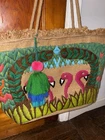 The America and Beyond Large Beach Tote Bag with Flamingo print is a stylish choice for any beach day! It measures 24 inches across and 15 inches tall and has an interior zippered pocket. Made of burlap with a cotton lining, this rectangular tote features double handles for easy carrying. With inner pockets for organization, this beach-themed bag is perfect for a day at the beach or any outdoor adventure. The vibrant flamingo print adds a fun and tropical touch to the overall design.