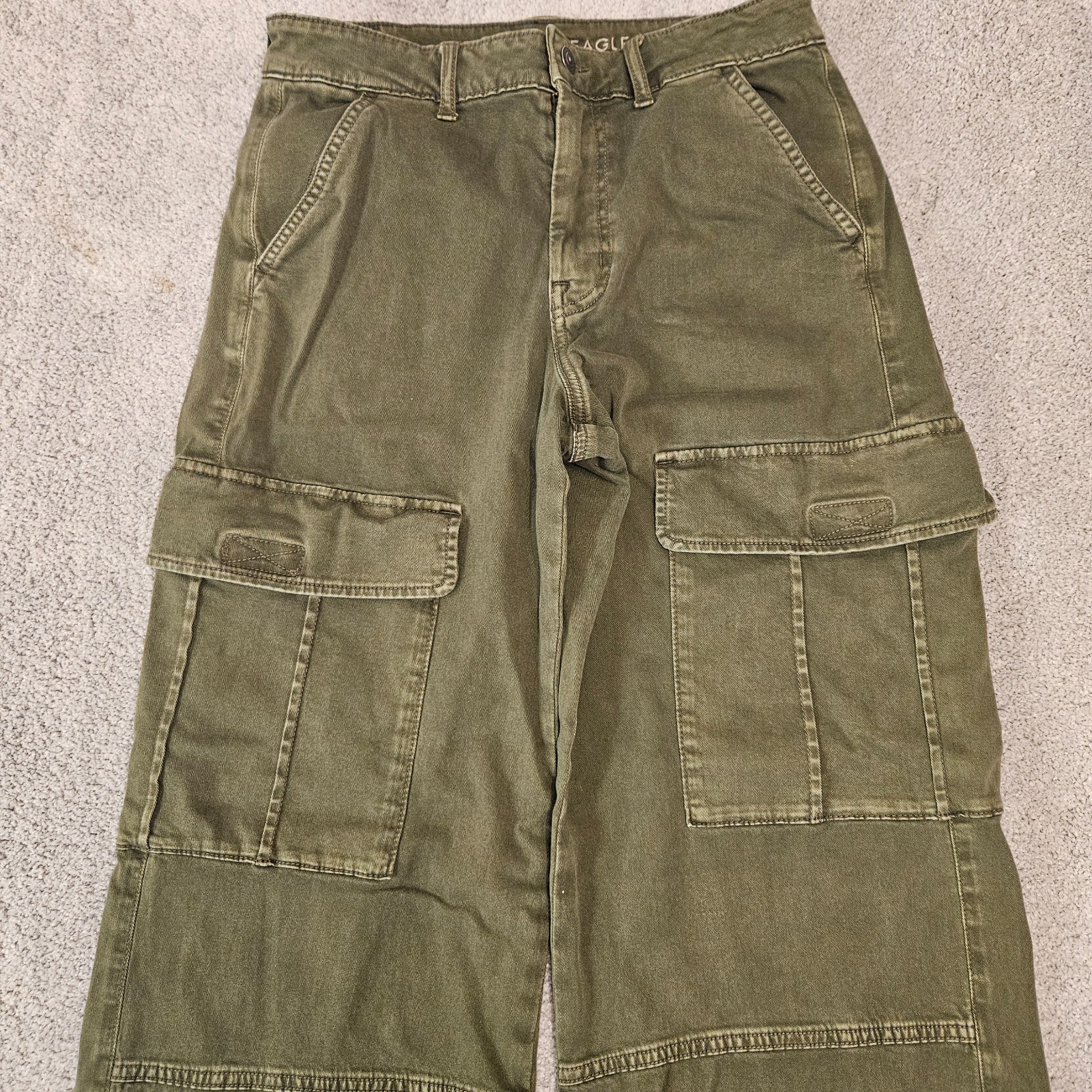 Stay on trend with these American Eagle Baggy Wide Leg Cargo Pants in a stylish olive green. These women’s size 6 Regular cargo pants feature a relaxed wide-leg fit, soft stretch material, and oversized utility pockets for a true Y2K streetwear look. Made with a comfortable cotton-viscose blend, they offer ease of movement and an effortlessly cool silhouette. Perfect for casual wear, everyday outfits, or pairing with crop tops and sneakers. Gently used and well cared for — see photos for condition and measurements to ensure best fit. Thank you for your interest in the item listed. I take detailed pictures to paint the best picture of the item. All of my items are generally odor-free… non-smoking and free from mildew smell. Colors may appear different on different devices. #AmericanEagle #AEJeans #AEPants #CargoPants #WideLegPants #BaggyPants #UtilityPants #WomenStyle #Y2KStyle #StreetwearFashion #ArmyGreen #OliveGreen #AEOutfitters #TrendyPants #ResellerCommunity #DustAndGraceMarket #AmericanEagle #AEJeans #AEPants #CargoPants #WideLegPants #BaggyPants #UtilityPants #WomenStyle #Y2KStyle #StreetwearFashion #ArmyGreen #OliveGreen #AEOutfitters #TrendyPants #ResellerCommunity #DustAndGraceMarket #AmericanEagle #AEJeans #AEPants #CargoPants #WideLegPants #BaggyPants #UtilityPants #WomenStyle #Y2KStyle #StreetwearFashion #ArmyGreen #OliveGreen #AEOutfitters #TrendyPants #ResellerCommunity #DustAndGraceMarket