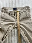 The product is a pair of American Eagle Kick Boot Pants in size 6 Short, featuring a low rise and Y2K bootcut style. The pants are in a khaki beige color, made of cotton twill fabric, and are machine washable. They have a flat front design with button accents, regular fit, and a 29-inch inseam. Perfect for casual occasions, these pants also offer comfort and pockets for added convenience. Suitable for all seasons, these American Eagle pants are a versatile addition to any woman's wardrobe.
