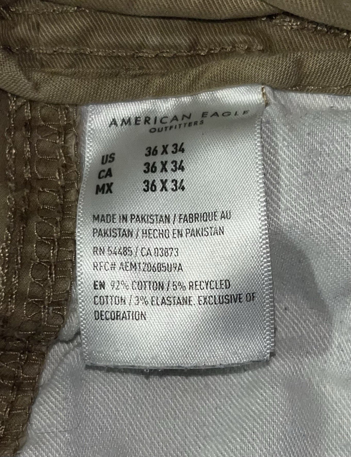 American Eagle Men’s Cargo Flex Pants Khaki Brown Casual Active Utility Workwear. (36 X 34)
