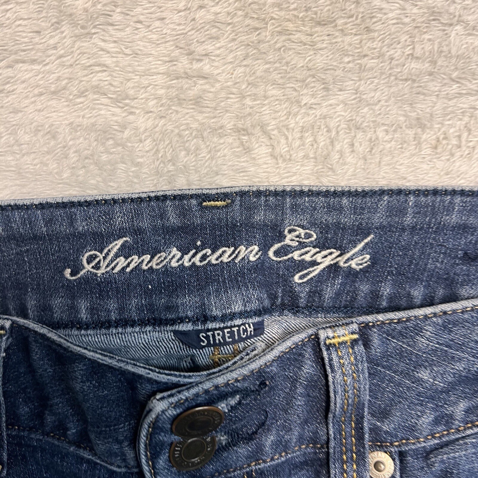 Embrace everyday comfort and style with these American Eagle Artist jeans. Crafted for a flattering fit and designed to move with you, these jeans offer a versatile medium wash that pairs effortlessly with any top. The subtle whiskering and fading add a touch of lived-in charm, making them perfect for casual outings or weekend adventures. Measurements: • Waist: 14 in • Inseam: 29 in • Rise: 8 in • Leg Opening: 7 in Style: Cropped Department: Women Fabric Wash: Medium Waist Size: 26 in Type: Jeans Accents: Logo, Button, Embroidered Features: Pockets, Distressed, Comfort, Crop Fit: Slim Pattern: Solid Rise: Mid (8.5-10.5 in) Fabric Type: Denim Inseam: 26 in Material: Cotton Blend, Spandex Closure: Button, Zip Theme: Logo Keywords: AE, denim, blue jeans, boot leg, casual wear, everyday, stretch denim, distressed, vintage wash, comfortable, mid rise, skinny boot, cropped