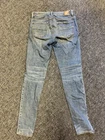 The American Eagle Outfitters Jeans in size 10 offer a stylish and comfortable option for women. These hi-rise skinny jeans feature a solid blue color, made from cotton denim with added stretch for a comfortable fit. The jeans have a zip closure and a 5-pocket design, with button accents adding a touch of flair. Easy to care for with machine washable instructions, these jeans are versatile for all seasons and can be worn year-round. Perfect for everyday wear or dressed up for a special occasion, these American Eagle jeans are a wardrobe staple for any fashion-forward individual.