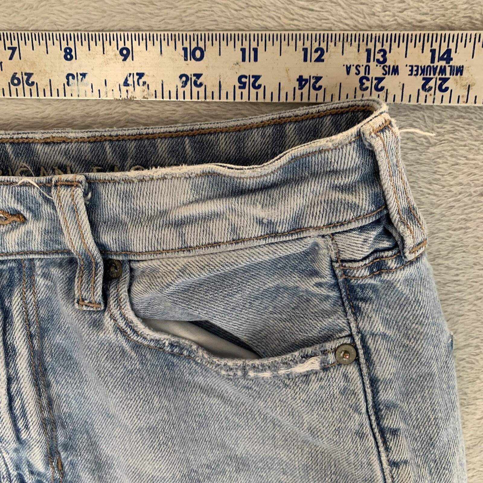 Embrace effortless cool with these American Eagle Outfitters Mom Straight Jeans. These light wash denim jeans feature a perfectly distressed look with bold rips at the knees, offering a lived-in vibe that's undeniably stylish. The classic mom jean silhouette flatters every figure, providing a comfortable yet chic fit. Imagine pairing these with a graphic tee for a casual day out or dressing them up with a silky camisole and heels for an edgy evening look. Perfect for concerts, weekend brunches, or simply adding a touch of rebellious flair to your everyday wardrobe. Measurements: • Waist: 28 in • Inseam: 26 in • Rise: 10 in • Leg Opening: 6 in Style: Straight Department: Women Fabric Wash: Light Waist Size: 28 in Type: Jeans Accents: Distressed, Zipper, Button, Logo Features: Distressed, Pockets, Stretch Fit: Regular Pattern: Solid Rise: Mid (8.5-10.5 in) Fabric Type: Denim Inseam: 26 in Material: Cotton, Spandex Closure: Zip, Button Theme: Punk, Retro Keywords: American Eagle, Mom Jeans, Straight Leg, Distressed Denim, Ripped Jeans, Light Wash, Casual, Everyday Wear, Streetwear, Edgy, Comfort Fit, Vintage Wash, Denim