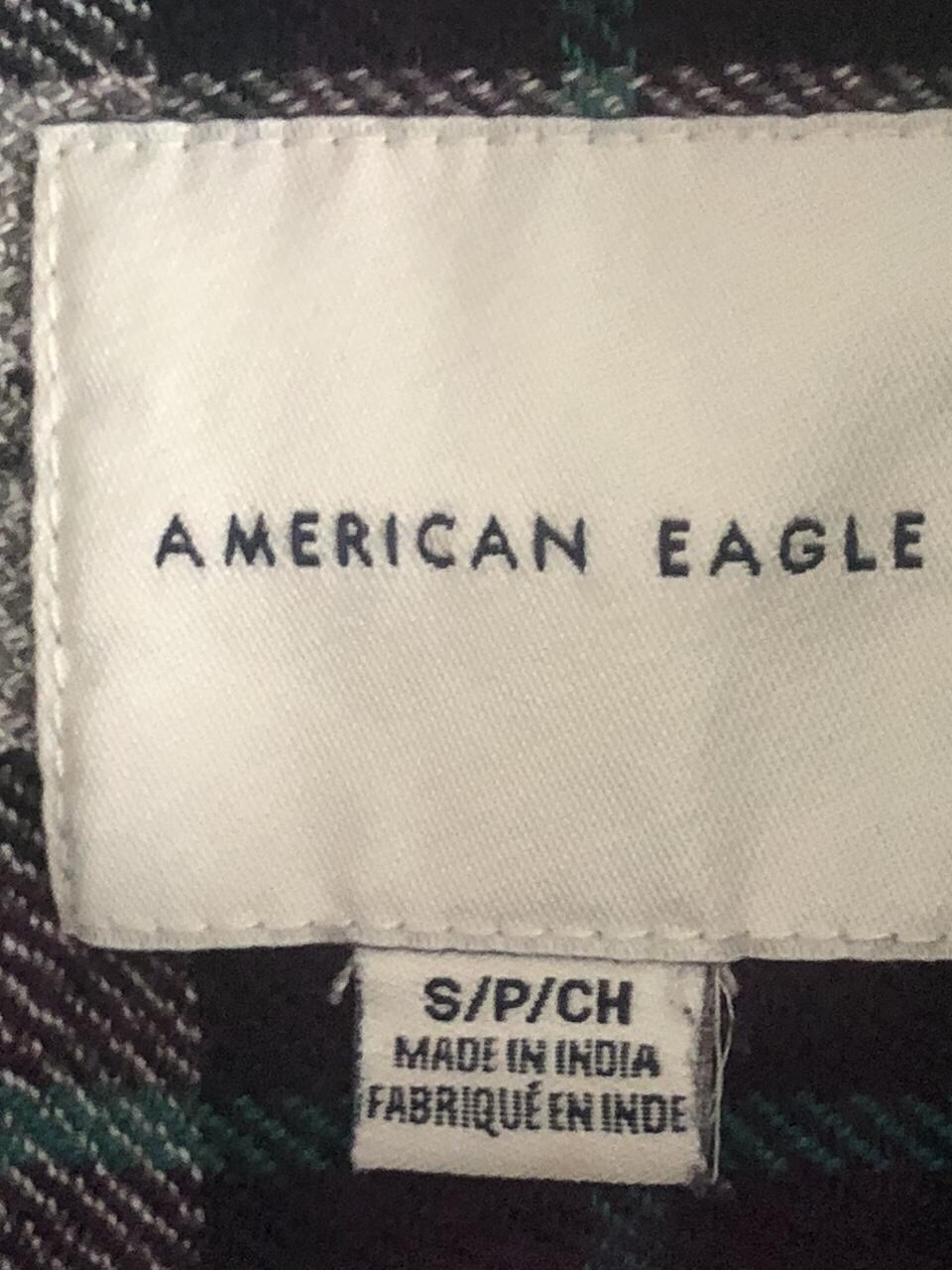 This American Eagle Outfitter Men's Flannel Shirt in size small features a stylish purple checkered design, perfect for casual, workwear, or travel occasions. Made from 100% cotton flannel, this long sleeve button-up shirt has a collared neckline and a regular fit. Machine washable, it also includes thoughtful features like pockets, thermal properties, and easy care fabric. Made in India, this shirt is a versatile addition to any man's wardrobe, suitable for the winter, fall, and spring seasons. See photos for fitting.