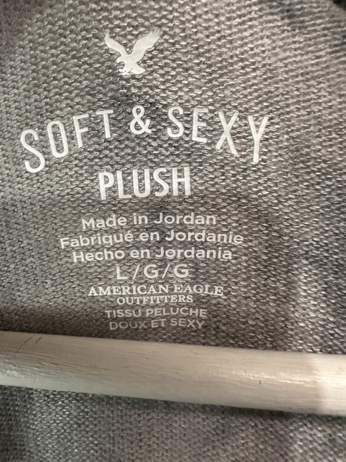 MEASUREMENTS length-26” bust-19” unstretched The American Eagle Outfitters Soft & Sexy Gray Tie Dye Sweater Top in size L is a stylish and comfortable garment perfect for casual occasions. Made from a blend of polyester and viscose, this tight-knit sweater features a V-neck and long sleeves, offering a breathable and lightweight feel. The tie-dye pattern adds a unique touch to the classic gray color, making it a versatile piece for any season. With its regular fit and pullover style, this sweater combines fashion with comfort for a trendy look.