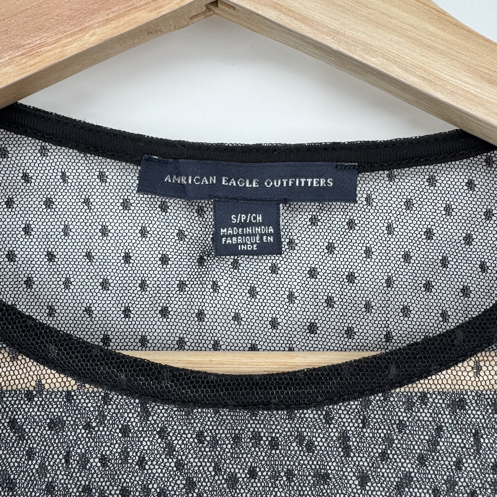 The American Eagle Outfitters Y2K Mesh Sheer Black Floral Long Sleeve Top in size small is a stylish and trendy piece of women's clothing. Made from nylon mesh fabric, this top features a round neckline, long sleeves, and beautiful embroidered floral accents. The sheer material adds a touch of femininity, while the regular fit and black color make it versatile for various casual occasions. Perfect for those looking to add a unique, retro-inspired piece to their wardrobe collection.