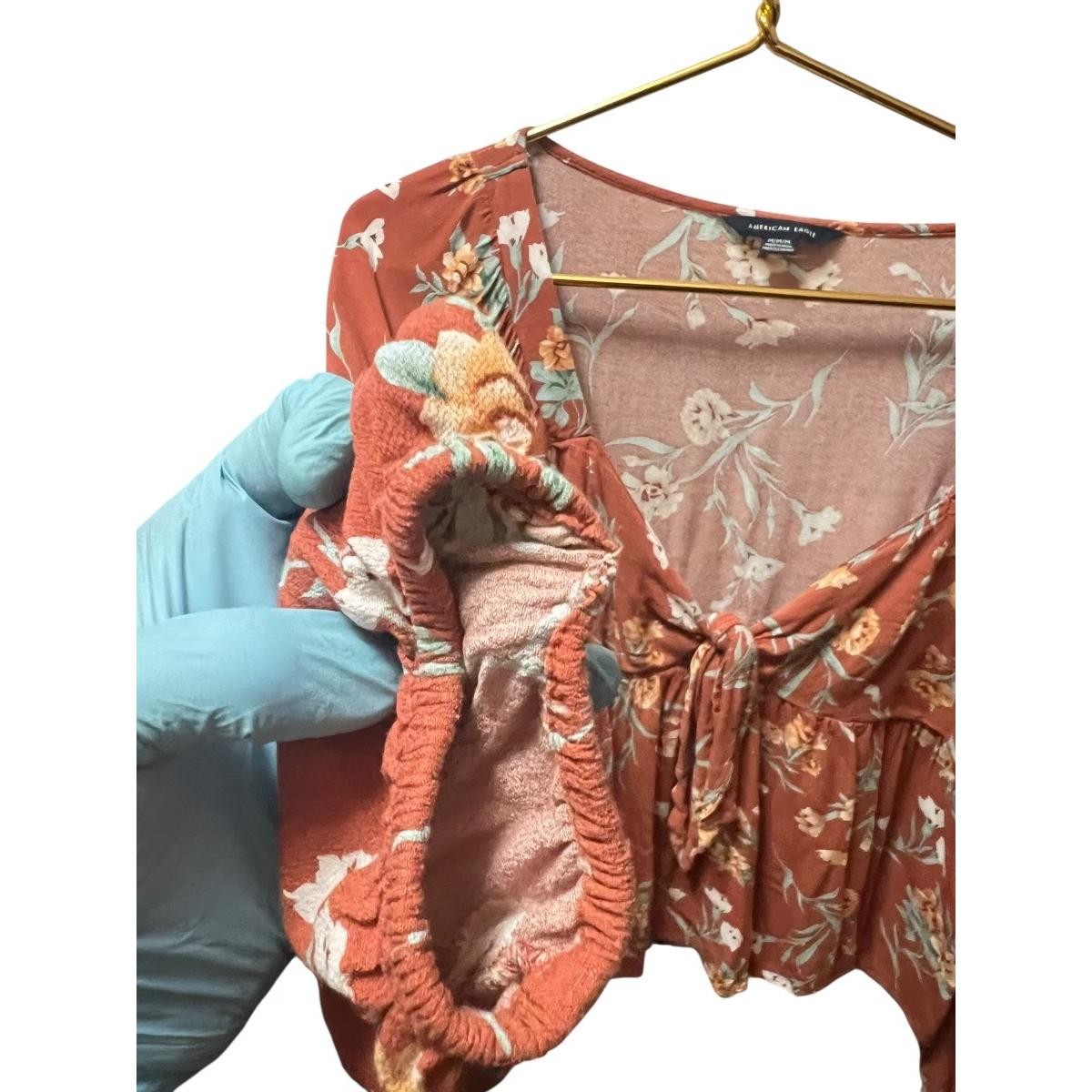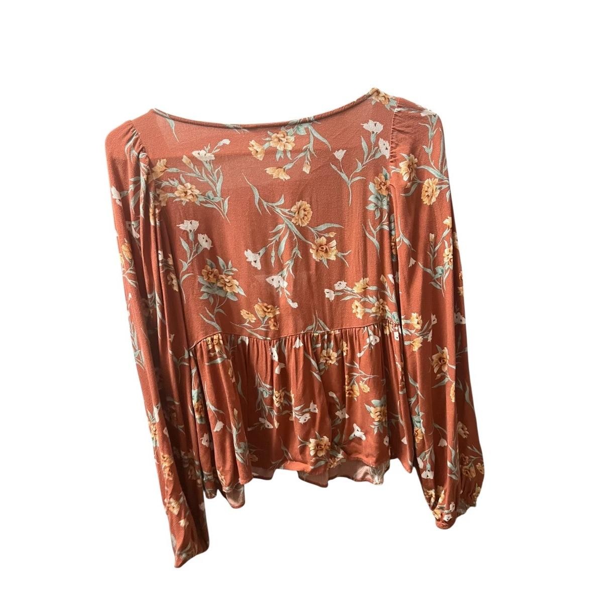 American Eagle Blouse Womens M Rust Floral Tie Front Boho Cottagecore Long Sleeve Fun and flirty, this floral tie front blouse is made for effortless boho vibes. Perfect for cottagecore lovers wanting an easy, statement-ready look! Condition: Like new condition. Color may vary by viewing device Size: US M, CA M, MX M, UK M Features: Long sleeves, Tie front, V-neck, Rust color, Floral print, Boho style Brand: American Eagle Type: Blouse Style: Floral Color: Rust Material: 100% Viscose Measurements: Approximate and taking while hanging. Pit to pit 17.5 inches Length 22 inches Keywords: bohemian, summer, vacation, festival, trendy, feminine, lightweight, relaxed, everyday, statement