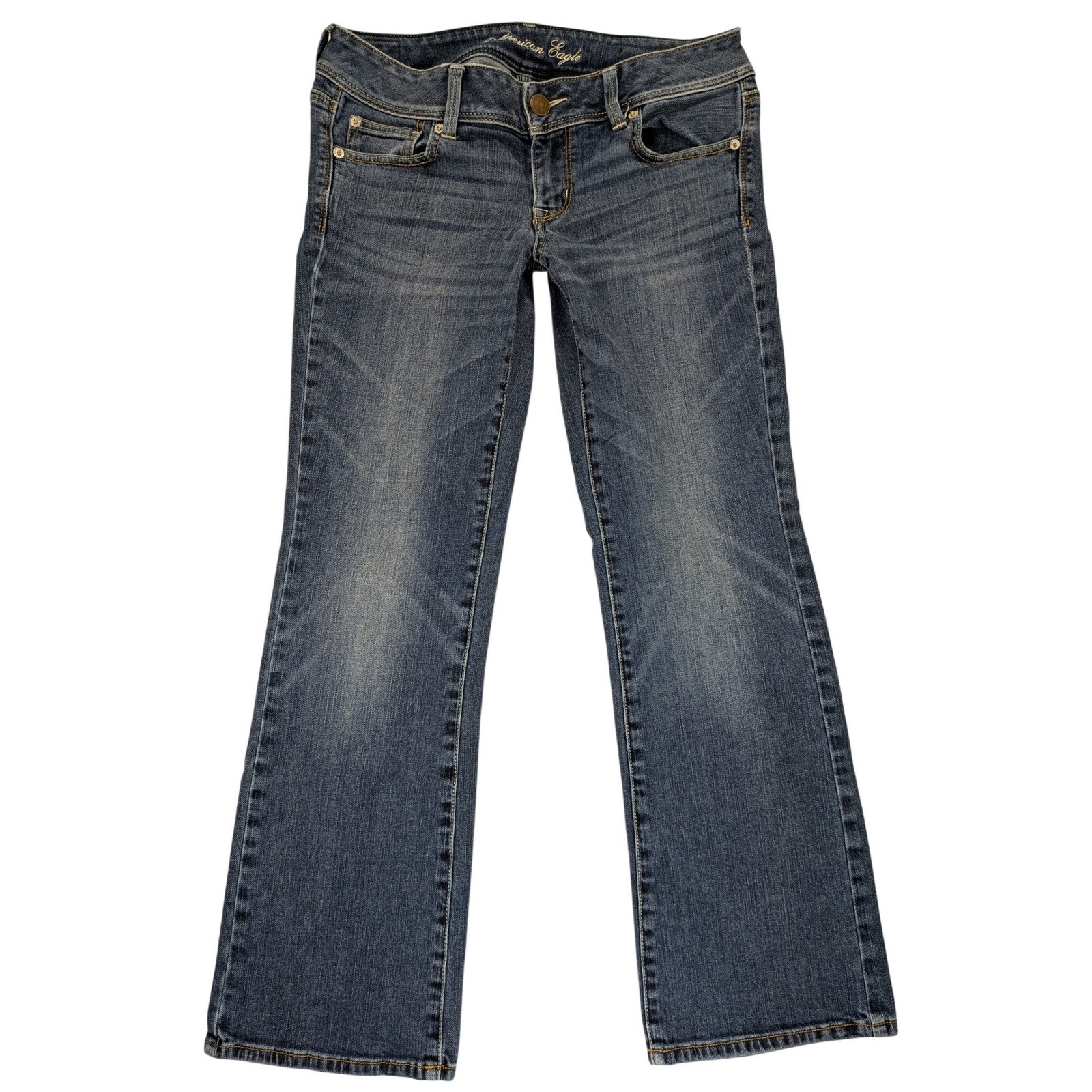 $ 18.3American Eagle bootcut Dress Jeans Women 2(26X31 1/2) low rise light Wash ripped