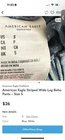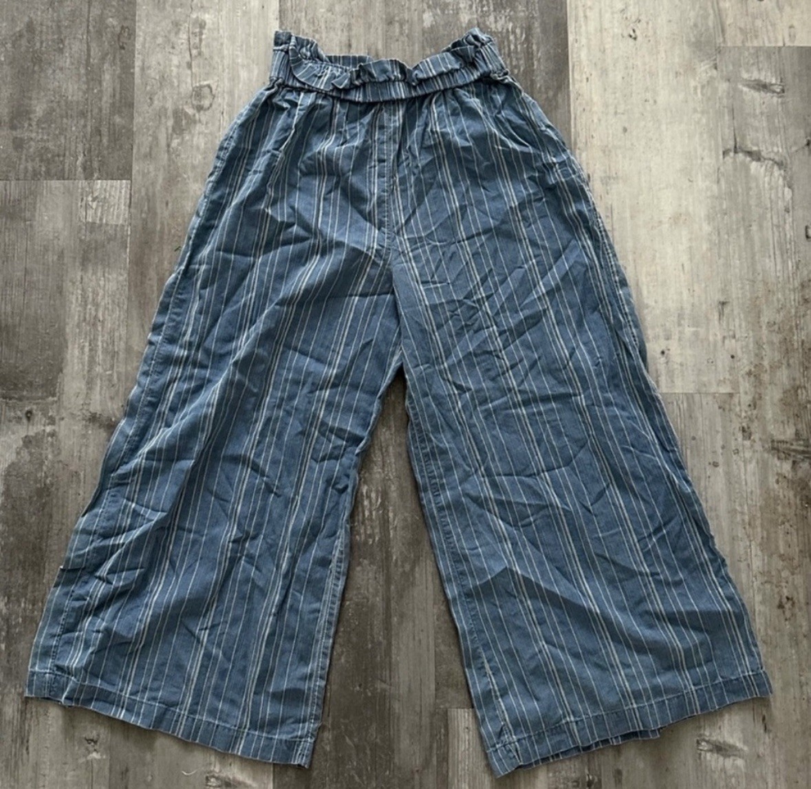 Upgrade your boho wardrobe with these American Eagle Striped Wide-Leg Pants in Size Small. Featuring a timeless blue and white vertical stripe pattern, these pants offer a flattering high-waisted fit with a comfortable elastic pull-on waistband and a breezy, relaxed silhouette. Perfect for beach days, vacations, travel, festivals, resort wear, or casual everyday outfits. Lightweight and flowy for summer, yet great for layering in cooler weather. Condition: Excellent pre-owned condition with no flaws. Clean, soft fabric and ready to wear. Features • Brand: American Eagle Outfitters • Size: Women's Small • Color: Blue & White • Style: Wide-leg, high-waisted • Pattern: Vertical stripe • Material: Lightweight woven fabric • Waist: Pull-on elastic waistband • Fit: Full-length relaxed boho fit • Perfect for: Beach cover-up, travel, festivals, lounging, resort wear American Eagle wide leg pants boho pants striped beach pants AE pants womens high waist flowy pants travel pants women festival boho pants resort wear pants