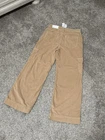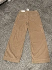 These American Eagle Super High Rise Baggy Wide Leg Corduroy Pants in Size 10 for Women are a stylish and versatile addition to any wardrobe. These beige/light golden/brown pants feature a flat front and a high rise waist, perfect for a casual occasion. Made of durable corduroy fabric, these machine washable pants have a wide-leg style that is both comfortable and on-trend. Suitable for all seasons, these cargo-style pants from American Eagle Outfitters are a must-have! Vintage looking! Smoke free home. Perfect condition. Never worn. Brand new with tags in tact. Super cute pants. I paid $60 for them.
