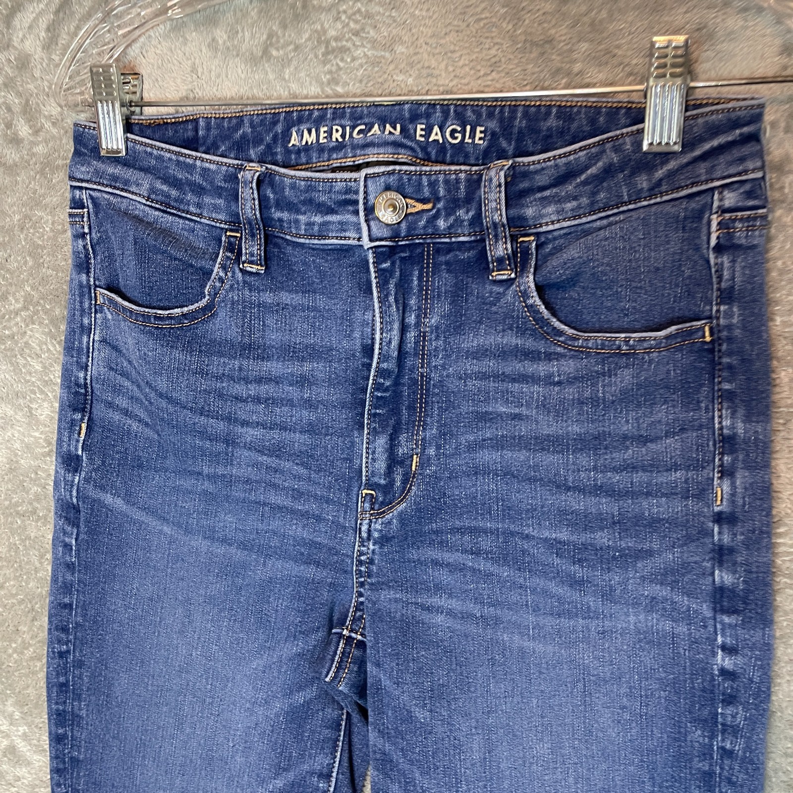 Good Pre Owned condition. Please see photos for details. SUPER FAST SHIPPING!!! We ship next business day! If you aren't happy with your purchase we offer 30 day FREE returns. No questions asked! American Eagle Women Super High Rise Jegging Stretch Denim Jean 8 X-Long