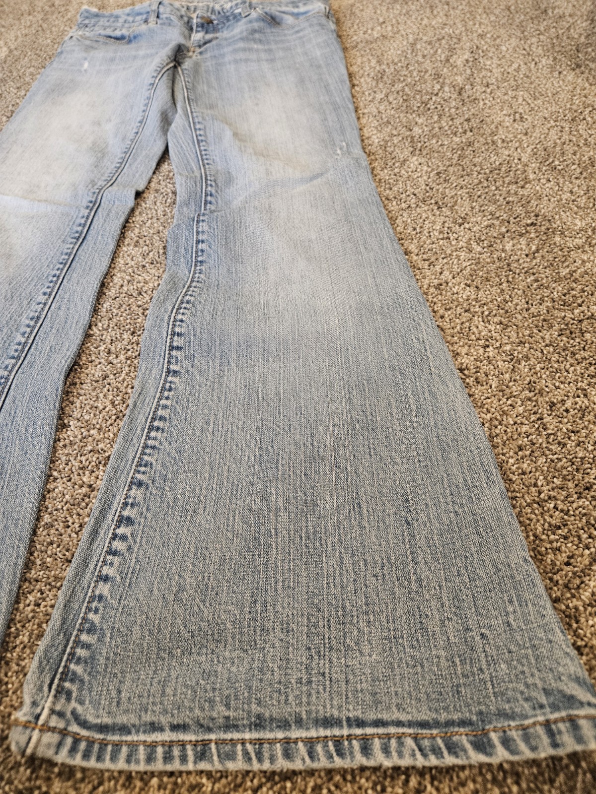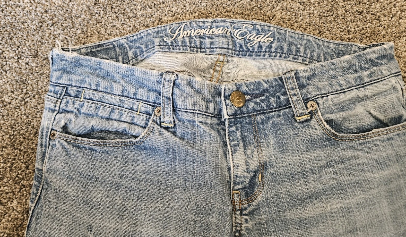 The American Eagle Women's Jeans in size 6 regular are a stylish and versatile addition to any wardrobe. With a flattering festival flare style and stretch material, these jeans are perfect for a casual boho look. Made from a comfortable cotton blend denim, these vintage-inspired jeans from American Eagle Outfitters are machine washable and feature a classic 5-pocket design. In a solid blue color, these jeans are suitable for all seasons and can be personalized to suit your individual style. Perfect for the modern woman looking for a trendy yet relaxed fit.