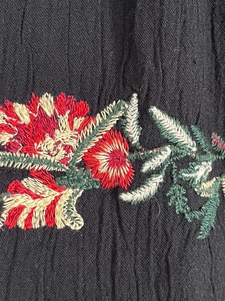 Love this top! The floral embroidery gives it such a cute boho vibe, and the fabric is soft and flowy—perfect for summer. It fits true to size and looks great with jeans or a skirt. Super fast shipping too! No flaws, just as described. Highly recommend!
