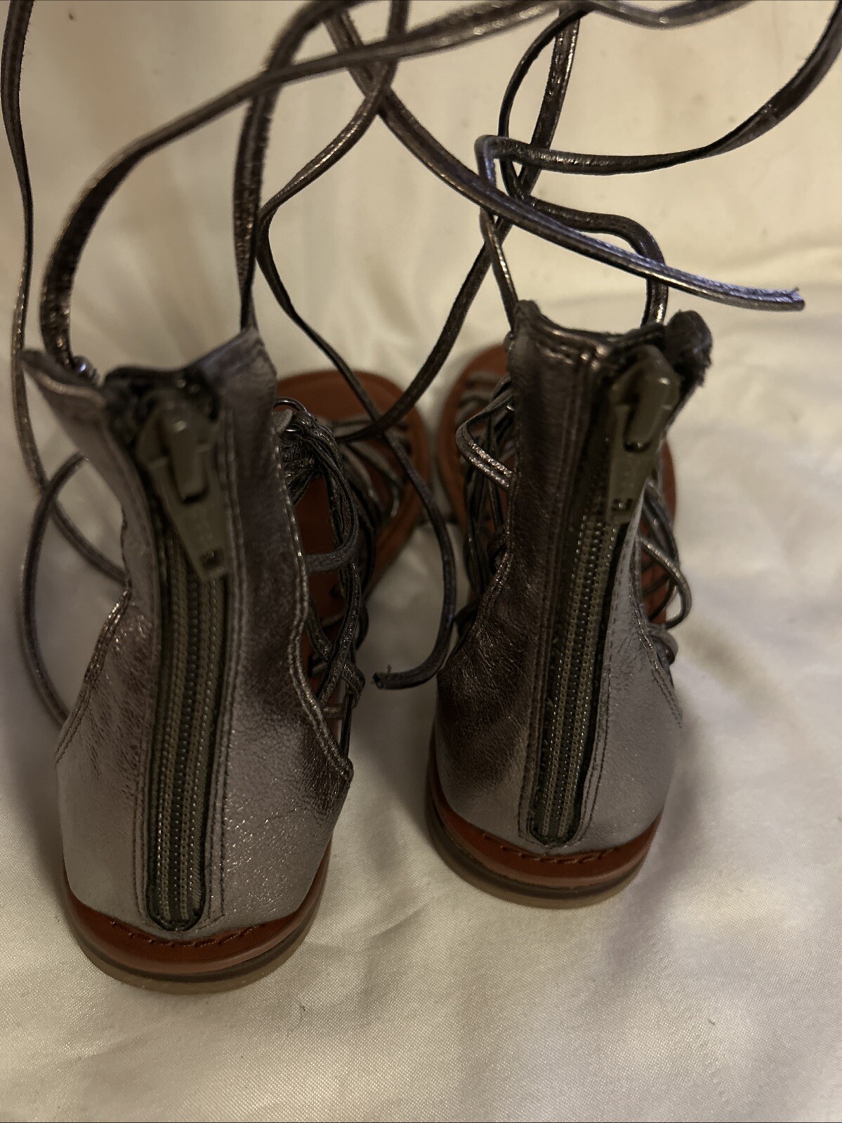 Absolutely love these sandals! The strappy design is stylish yet comfortable, perfect for summer. The lace-up detail adds a boho-chic touch, and they fit true to size. Lightweight and easy to walk in—great for festivals or casual outings. Even pre-owned, they’re in great condition. Super happy with this purchase!