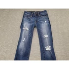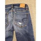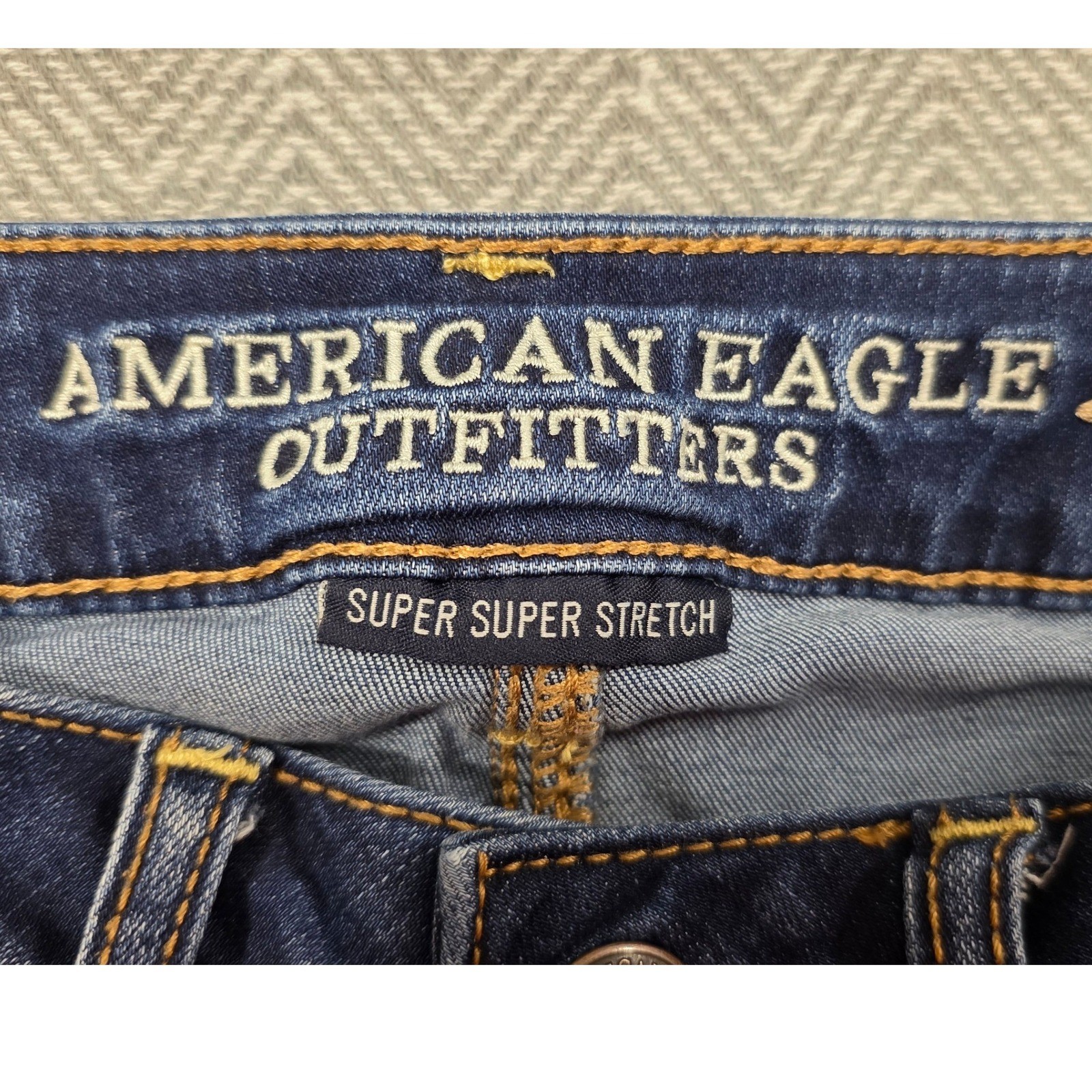 Embrace your confident stride in these American Eagle Outfitters jeggings, designed for ultimate comfort and style. The deep blue wash is artfully distressed with rips and tears, offering a lived-in, edgy aesthetic that's perfect for expressing your individuality. The 'Super Super Stretch' fabric hugs your curves, providing an exceptionally comfortable and flattering fit that moves with you throughout the day. These versatile jeggings are ideal for casual outings, weekend adventures, or adding a touch of cool to your everyday look. Measurements: • Waist: 24 in • Inseam: 27 in • Rise: 7 in Style: Jegging Department: Women Fabric Wash: Medium Type: Jeans Accents: Logo, Ripped Features: Distressed, Stretch, Pockets Fit: Slim Pattern: Solid Rise: Mid (8.5-10.5 in) Fabric Type: Denim Material: Cotton Blend, Spandex Closure: Zip, Button Season: Summer, Fall, Spring Keywords: AE, stretch denim, ripped jeans, distressed denim, skinny jeans, blue jeans, casual wear, everyday style, comfort fit, fashionable, trend Every purchase takes the BLUES away!