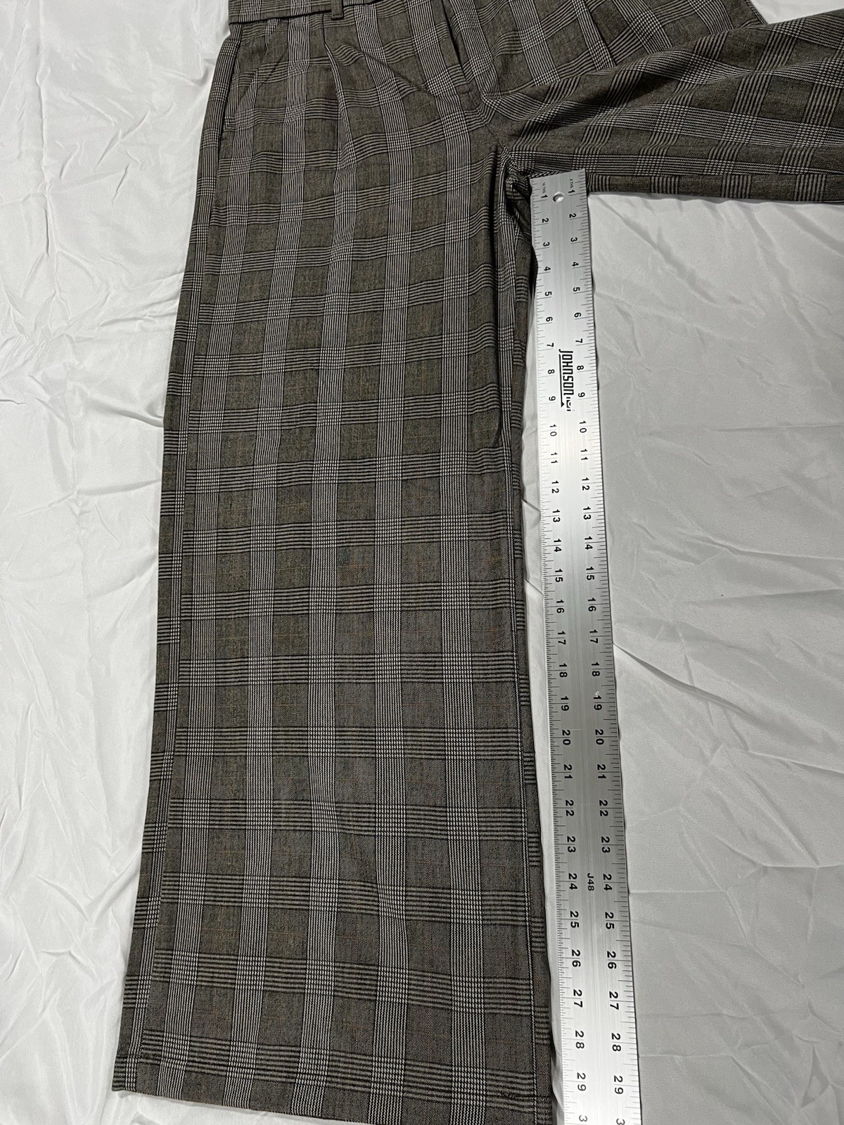 The American Eagle Women's Wide Leg Trousers in plaid are a stylish and versatile option for a casual or dressy look. Made of comfortable cotton material, these trousers feature a high rise and flat front design with button accents. The wide-leg style and multicolor plaid pattern make them perfect for the summer, fall, and spring seasons, while the regular fit ensures a comfortable and flattering silhouette. With pockets for added functionality, these trousers from American Eagle Outfitters are a fashionable choice for any occasion.