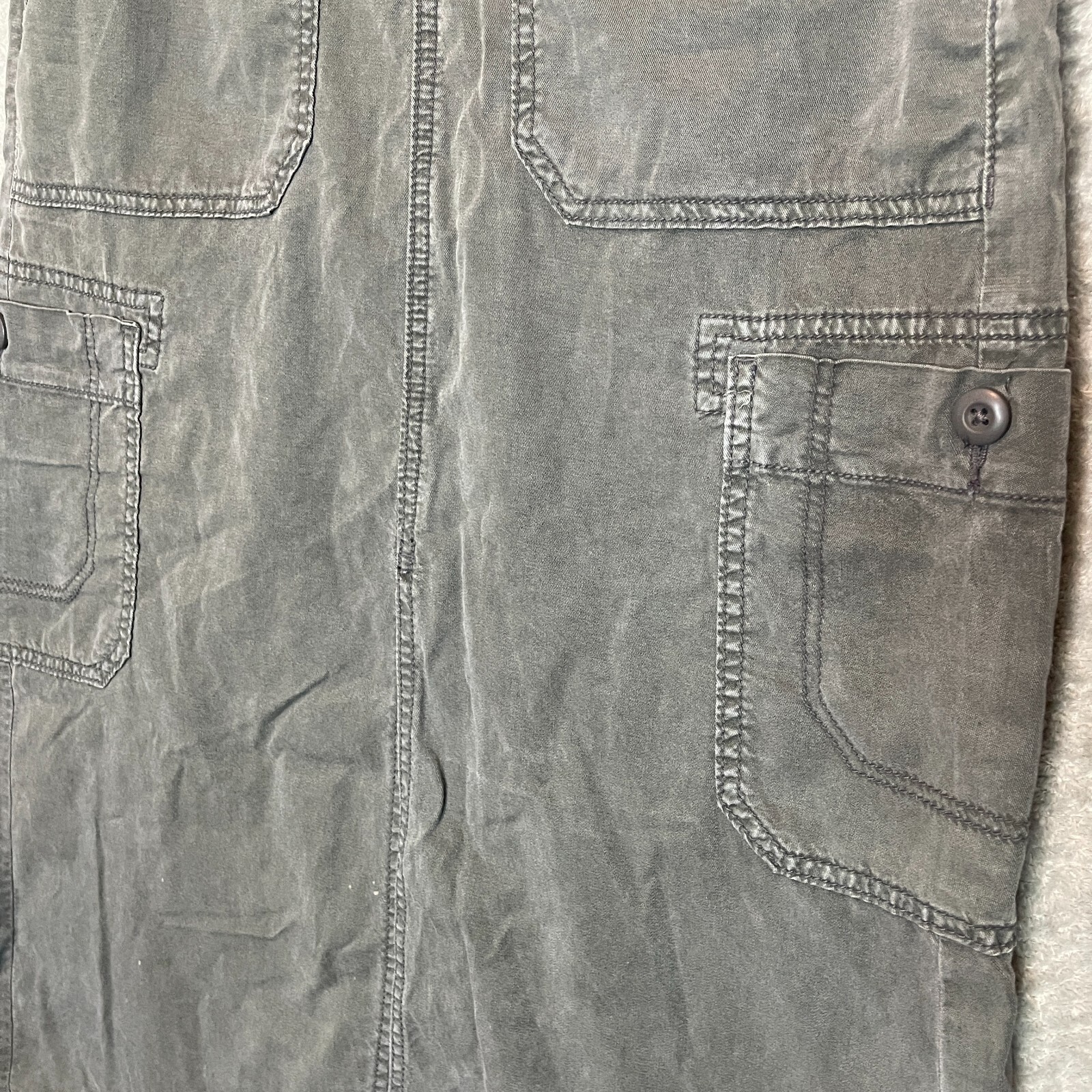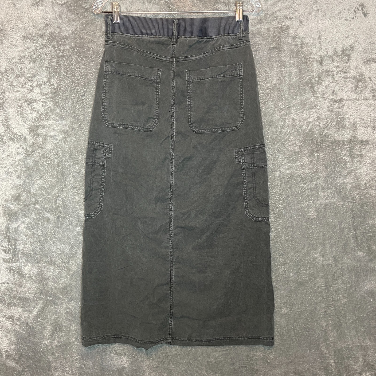 Good Pre Owned condition. There is some paint splatter on the front closer to the bottom hem. The string for the waist is useable but not in the greatest shape. Please see photos for details. SUPER FAST SHIPPING!!! We ship next business day! If you aren't happy with your purchase we offer 30 day FREE returns. No questions asked! American Eagle Women Y2K Grunge Punk Utility Split Front Hem Cargo Maxi Skirt 2