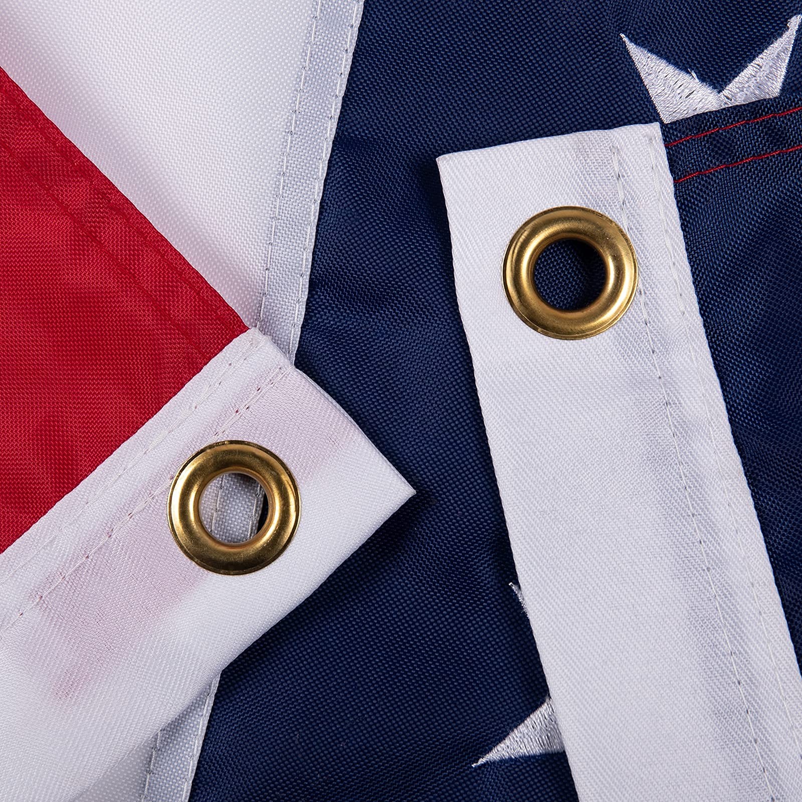 HighQuality materials: U.S Flag Made of heavyweight 420D nylon material. Adopt 50 embroidered stars, 13 stitched white and red stripes, heavy brass buttonhole and four-point needle flying hem, To prevent the flag from fraying and tearing.suitable for all harsh outdoor weather. Unique Advantages: Anti-fading dyes can be used for long-lasting bright colors. Double-layer cloth is used at the two corners of the flag to make it more durable. Size: 3 5. Foot. UNIQUE ADVANTAGES: In order to make the flag stronger, we use cloth flag with double layer angle on the two corners of the flag, so that the flag can fly in the air for a longer time. This is our advantage. QUALITY MATERIAL: This outdoor 3 x5 foot American flag is made of 420D nylon, which is thicker than ordinary 210D, and it is tear-resistant and helps to withstand harsh outdoor environments. The flag has been specially processed and can be dried quickly! PROFESSIONAL CRAFT: 50 embroidered stars, stripes stitched on the cloth, heavy brass buttonholes and four-point needle flying hem, and provide a high degree of UV protection to prevent fading. When you put the flag in your hand, you will feel the amazing workmanship of this American flag. SCENE USE: The Usa flag is perfect symbol to show your pride while celebrating holidays like New Year's Day,Lincoln's Birthday,President's day,National Day, Menorial Day,Independence Day,Labor Day,Navy Day,Election Days,Thanksgiving Day,Christmas Day,and every day display.Whether you are celebrating a beautiful day or an important occasion. PROUD MOOD: It is very suitable for indoor and outdoor use, it will proudly show your patriotism and pride. You can hang it from the flagpole or hang it on the wall. This is a good gift for your relatives and friends. SATISFACTION : If you have any questions, please . Assurance to give you a satisfactory solution. Care instructions: Hand Wash Only