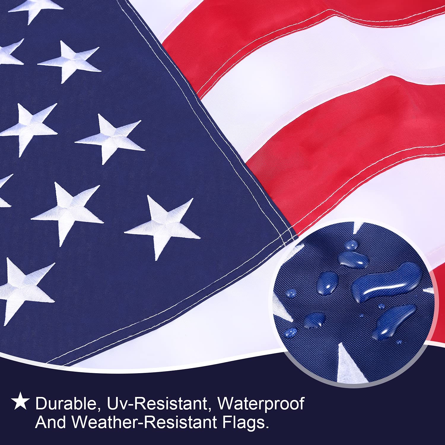 Kerothen 3x5 american flag, concentrated top, authentic, proud, sturdy, durable american flagl and so on quality. We have a fine independent stitching double-row sewing technology and a solid four-row stitched edge, with a thick canvas head and brass grommets, the most standard 50 embroidery stars and 13 stitched stripes american flag. Adopt new process technology for stitching US 3x5 flag We have adopted a new precision craft stitching,two rows of lock stitches and four rows of stitches on the flying hem are tighter and stronger, while 50 embroidery stars and 13 stitched American flags,represent this The history of our struggle for freedom and the eternal belief of veterans. New technology waterproof material We use a new technology waterproof material, suitable for outdoor american flag flying in rainy areas,ensure the bright colors of the American flag outdoor standard,Has a strong protection UV fading performance, to ensure the bright colors of the flag under the outdoor sun, the best standard 3x5 us flag outdoor. Sturdy durable toughtex durable is a requirement we must meet, you can use it with confidence,usa flags 3x5 outdoor. The sewn stars and each stripe are individually sewn together, and the sturdy brass grommet and thick, durable canvas head are tightly locked together ,Can be suitable for heavy rain weather, and ensure longer durability. Use in multiple occasions Kerothen USA 3×5 flag, you can use it in any occasion. When you travel, you can tie it to the car and take it in every place. It can also be used as a flag for outdoor farms, holiday gifts for loved ones, decoration on the wall of the room. At the same time, you can hang the flags on the window outside the house, the corridor and the flagpole in front of the door are all good flags. Quality Standard Outdoor American Flag:We have done a deep processing of the fabric, which has a tenacious performance. In different seasons the american flag will be bright and dazzling. When you hang sewn american flag on the flagpole, you will see it Elegant flight at a great distance. gives you a sense of pride that you can't express, choose our 3x5 american flag outdoor, provide the best American quality flag, let you have a patriotic faith, veterans Unbeaten feelings. Sturdy and Durable:Best weatherproof material to keep your 3×5 American flag in good condition in high temperature, humidity, blizzard, hail and strong wind, and you don't have to worry about its damage because it Equipped with two sturdy brass grommet that can be rust-proof and fastened to a durable canvas head, which will make your american flag more durable. let you become the American outdoor banner flying all year round. High Quality New Technology:Embroidered stars and sewing are my new precision craftsmanship. We have tight delicat embroidered stars and independent splice double stitch stitching,At the same time two rows of lock stitches and four rows of stitches on the flight hem were used for each edge to improve durability. stronger tear and tear resistance, avoids rapid wear and will ensure longer lasting use. For Many Occasions Use:US Flags 3x5 outdoor, you can use it in any occasion. When you travel, you can tie it to the car and take it in every place. It can also be used as a usa outdoor flag for farms, for the Loved ones and friends Activity flag gift, American flag as a decoration on the wall of the room, and you can hang the flags on the window outside the house, the corridor and the flagpole in front of the door.All are good usa flag shows. Satisfaction:We have the most complete service system, let you buy the 3×5 American flag correctly for the first time, and receive a strong sense of identity, and we provide the best quality products at the best price.