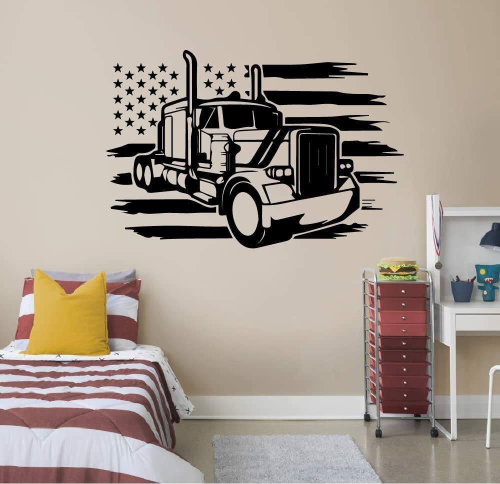 American Flag Truck Vinyl Wall Decal for Home Room Art Decors