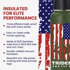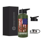 ELITE PERFORMANCE - COLD FOR 24h & HOT FOR 12h: Designed for top-tier hydration, this water bottle 32oz with straw utilizes double-walled construction to achieve elite performance. It effectively maintains the temperature of beverages, keeping them ice cold for up to 24 hours or hot for up to 12 hours. Whether you're dealing with sweltering heat or chilly weather, your drink will stay at the perfect temperature. 3 DIFFERENT LIDS PROVIDED, FOR ALL YOUR NEEDS: with our american flag stainless steel water bottles, we offer 3 different caps: a STRAW LID for easy sipping, a leak-proof METAL CAP for optimal heat retention, and a FLIP-CAP for quick, one-handed closure during activities. Each cap is designed to enhance your experience, whether you're working out, running, exploring the outdoors, or commuting. Choose the one that best suits your needs. THERMO LOCK TECHNOLOGY: our 32 oz water bottles are engineered with Thermo Lock Technology, which provides exceptional durability. The advanced construction of our insulated water bottle safeguards against dents and drops, ensuring the water bottle maintains its integrity and performance over time, even with frequent use and in rugged conditions. HEALTY AND ENVIRONMENTALLY FRIENDLY: our insulated water bottle 32 oz are Made from BPA-free, laser-engraved Pro Grade 18/8 stainless steel. This insulated water bottle is both healthy and eco-friendly. It provides a safe drinking experience, free from harmful chemicals. The no-sweat coating keeps the exterior dry and comfortable to hold, while its reusable nature supports sustainable living by reducing reliance on single-use plastic bottles. RETIRED NAVY COMBAT WOUNDED: proudly offering a superior stainless steel water bottle featuring the iconic American flag and Trident logo, symbolizing strength, honor, and service.