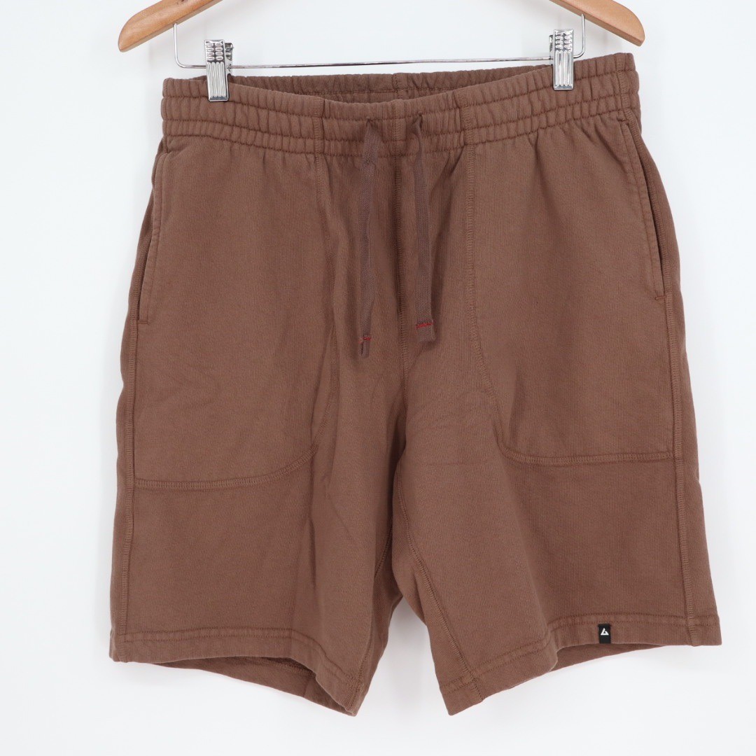 American Giant brown cotton sweat shorts. These comfortable shorts feature an elastic waistband with an adjustable drawstring for a customized fit. Two side pockets offer convenient storage. The classic silhouette makes them perfect for lounging at home or casual outings. Measurements: • Waist: 17 in • Length: 20 in • Inseam: 9 in Department: Unisex Adults Style: Sweat Performance/Activity: Gym & Training, Running & Jogging, Walking Theme: American Features: Elastic Waist, Drawstring, Pockets Inseam: 9 in Fit: Relaxed Material: 100% Cotton Waist Size: 35 in Occasion: Casual, Activewear Pattern: Solid Closure: Drawstring Season: Summer, Spring Keywords: American Giant, sweatshorts, brown shorts, lounge shorts, casual shorts, athletic wear, activewear, essentials, everyday wear, comfortable, drawstring shorts, mid-rise, summer shorts All orders are shipped the same business day or the next business day. Thank you for supporting my small business.