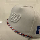 The product is an officially licensed Washington Nationals American University hat cap, featuring a special ticket for the 2025 season. The hat is off-white or vanilla in color and suitable for unisex adults in one size. It is a unique item that combines support for the Washington Nationals with a tie-in to the American University. Perfect for fans looking to show their team pride and receive a special ticket offer for future games. A special ticket was purchased to get this hat. From Nationals Park in Washington DC One Size fits all.