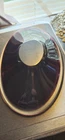 This beautiful amethyst-colored glass dish is perfect for your candy or trinkets. Measuring 7.5 inches in length and 5 inches in width with a depth of 1.5 inches, this oval-shaped dish has one compartment to keep your items organized. It is made of high-quality glass and has a smooth, shiny finish. The dish is unmarked but is of great quality. Use it as a decorative piece or to store your small items, this dish is versatile and will complement any decor. It is Amethyst in the light and in the darkness it looks brown.