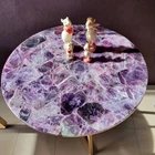Welcome To Unique-Handicrafts Shop Description Very unique Art by Indian Artist ,Coffee/Side Table top Used Material: Natural Agate Stones Arts Size: As Per Size Variations Color: Purple Shape: Round Pattern: Handmade Room: Bedroom, Dining Room, Hallway, Home Office/Study, Kid’s Bedroom, Kitchen, Laundry/Utility Room, Living Room,Patio, Playroom Packaging: Wood & Foam Export Packing Shipping: Air Can Be customize ,Please Message us your desired Size 1. It can be used as a Dining Table, Guest table, coffee table, center table top in show room as well as a gift for your loved ones. 2. The table top is made in Agra India & fully handmade. 3. The top will be delivered by FedEx or DHL free of cost door to door. 4. If there is any local tax,custom duties or Vat will be paid by the buyer at the destination. 5. The parcel is dispatch with proper packing & fully insured covering all kind of risk. 6. To maintain the table top is simple soap & water & dry cotton cloth. 7. If You Are Looking Something Customize, Let Us Know We Will Make For You As Per Your Design, Size & Shape. 8.Table top does not includes any wooden, marble stand or base if you like to buy marble or wooden base or stand that will be charged extra. Marble Agate Table Tops We are Manufacturer & Exporter of marble agate table tops. These marble agate table tops have different shapes like Round Table top, Octagonal Table Tops, Rectangle / Dining table tops, Square Table tops, Chess Table tops, Taj Mahal Table tops, Custom Designs Table tops also make marble Table top Base and Stand. Then we can be used as dining tables, coffee tables, Center tables, conference tables, chess boards, reading tables, bar tables , Garden table, side and corner tables or any other use as per the indoor and outdoor decor. They can also be placed outdoors in the garden, as marble is stain free, offers great resistance to the forces of nature, and can withstand heavy temperatures. We also meet customized requirement and offer our marble table tops at industry leading prices. About Agate Stone- Agate is a rock consisting primarily of cryptocrystalline silica, chiefly chalcedony, alternating with microgranular quartz. It is characterized by its fineness of grain and variety of color. Although agates may be found in various kinds of host rock, they are classically associated with volcanic rocks and can be common in certain metamorphic rocks. Ancient use of agate stone Agate is one of the most common materials used in the art of hardstone carving, and has been recovered at a number of ancient sites, indicating its widespread use in the ancient world; for example, archaeological recovery at the Knossos site on Crete illustrates its role in Bronze Age Minoan culture. Types Of Agate 1. Fortification Agate This is the most common and distinctive type of agate. In these agates, bands crystallized into concentric layers that more or less follow the shape of the cavity. The banding resembles an aerial view of a fort 2. Water-Line Agate (also called water-level or onyx) During its formation, silica-rich solution either entered the cavity slowly laying one band at a time, excess water drained out leaving a small amount of silica to settle out into separate bands, or the vesicle filled under low pressure. In any case, the silica crystallization in water-level agates is controlled by gravity in one orientation, forming a stack up of parallel bands. 3. Shadow Agate Some agates exhibit a shadow effect in which there is what appears to be movement across the agate layers when the specimen is rocked back and forth (or your orientation to the specimen moves). This optical effect only occurs when there are alternating translucent and opaque bands. It is caused when light goes into the agate, but is not reflected out. 4. Tube Agate Tube Agate During the formation of some agates, parallel projections of tiny hair-thin mineral rods grow first within the silica gel, around which later the chalcedony agate micro-crystals form. In some cases the inclusions remain, but sometimes they weather away leaving hollow tubes that subsequently fill in with silica. 5. Eye Agates This mysterious agate characteristic is believed to be formed when most of the silica gel drains from the cavity, leaving only a droplet that “beads up” on the inside wall of the cavity. This droplet crystallizes into solid chalcedony “eyes”. In some cases, crystal growth will continue from this droplet in a manner similar to the formation of stalactites in caves. Later, the pocket fills in with the usual deposition of chalcedony microcrystals. 6. Plume Agate These agates initially had formations on their outside layer that formed prior to the deposition of chalcedony bands. They are filament growths of mineral inclusions that resemble ferns or feathers. 7. Geode Agate Geode Agate In some cases the supply of silica-rich water runs out before the entire cavity fills in. When there is a hollow center within a crystalline outer fill, the specimen is considered a geode. Not all geodes have agate banding, but many do. Also, the inner layers can form into several different types of silica mineral crystals and may even have other types of mineral crystals. 8. Moss Agate Moss Agate Moss agates have clusters of mineral inclusions that resemble plants, trees, or landscapes. Most moss agate inclusions are comprised of iron or manganese oxide. In some cases, the inclusions inhibit chalcedony banding allowing the mineral clusters free reign to grow within the silica gel. 9. Seam Agate Seam agates for in cracks within host rock, rather than in rounder pockets. The bands form in parallel rows that follow and fill in the crack or seam.