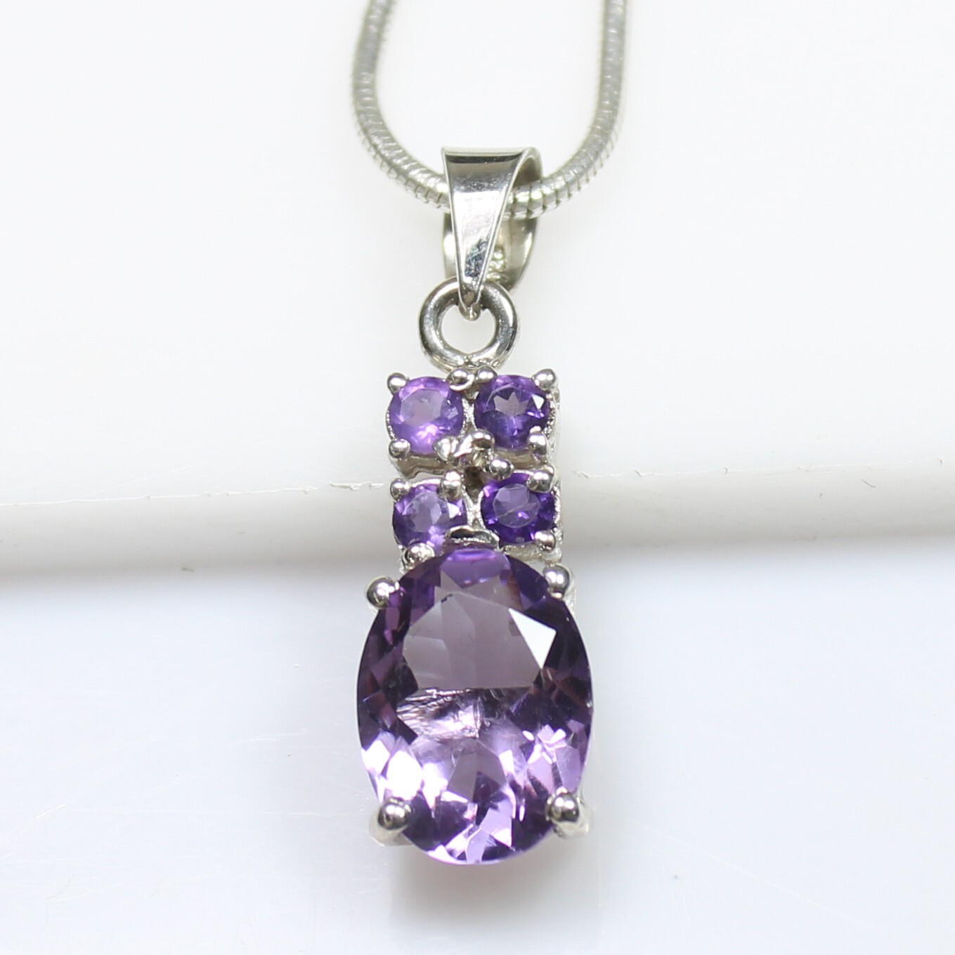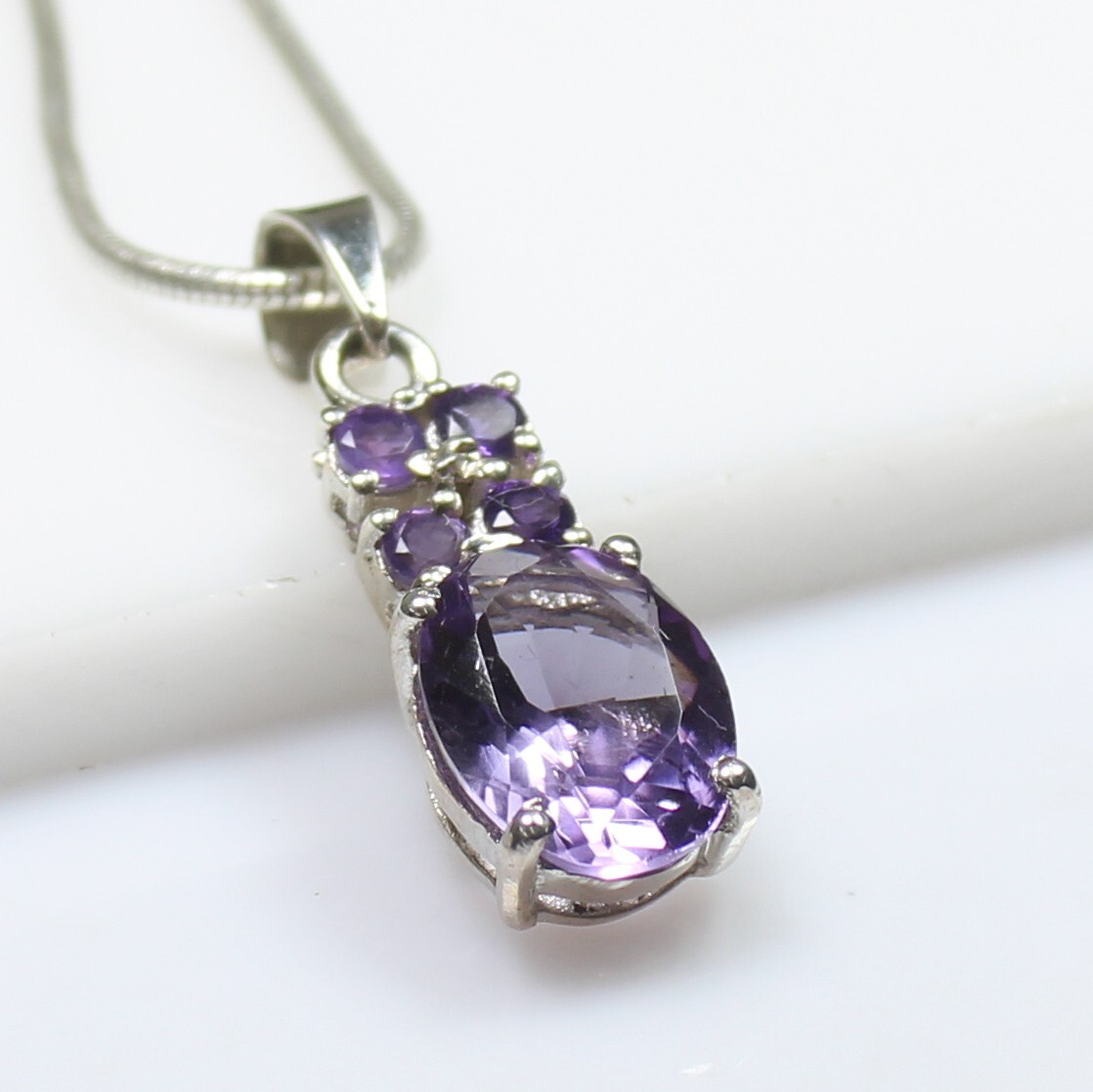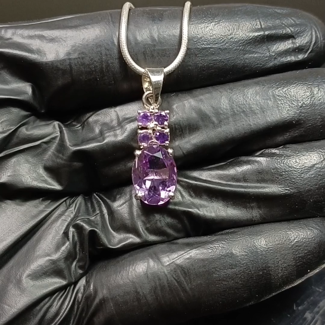 ARBIYA GEMS JEWELRY TYPE : PENDENT WITH SILVER CHAIN STONE : NATURAL PURPLE AMETHYST SIDE STONES : AMETHYST NECKLACE SIZE : ALL SIZES AVAILABLE NECKLACE WEIGHT : 7.90 GRAMS INCLUDING CHAIN NECKLACE METAL : STERLING SILVER METAL PURITY : 925 TREATMENT : NATURAL COUNTRY OF ORIGIN : INDIA HANDLING TIME: 1-2 DAYS DELIVERY TIME : WE USUALLY TAKES 15-25 DAYS BUT MOSTLY IT DELIVERS TO CUSTOMERS WITHIN 15 DAYS RETURN POLICY : RETURN ACCEPTED ON MANUFACTURING DEFECT WITHIN 30 DAYS . RETURN GIVEN AS MONEY BACK OR REPLACMENT FEEDBACK POLICY : PLEASE LEAVE US A POSITIVE FEEDBACK IF YOUR ITEMS DELIEVERED IN GOOD CONDITION