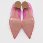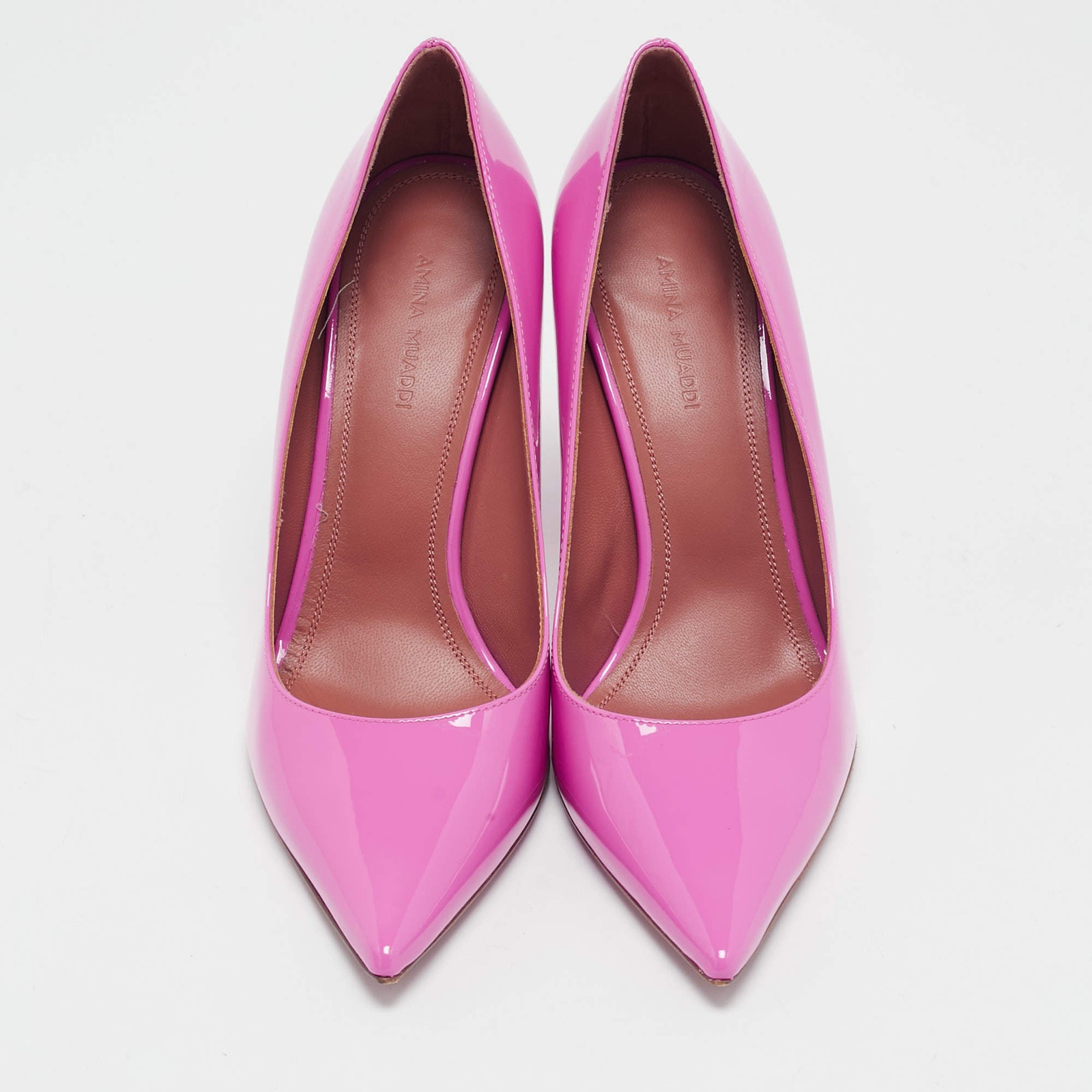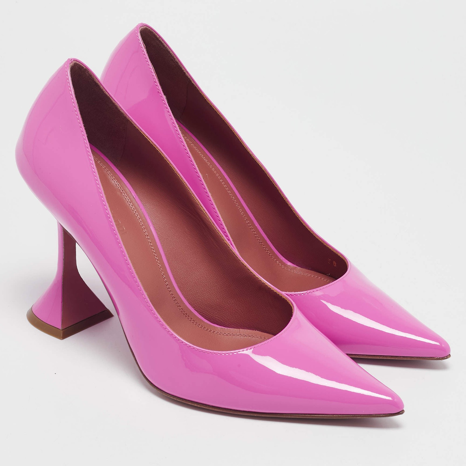 Our eBay Store About Us Contact Us Add to Favorite Sellers Amina Muaddi Pink Patent Leather Ami Pumps Size 38 Playful and polished, the Amina Muaddi Ami pumps stand out in glossy pink patent leather with the label’s signature flared heel. With their modern silhouette and irresistible color, these heels strike the perfect balance between fashion-forward and fun. Product Details Brand Amina Muaddi Color Pink Includes Original Dustbag Outsole Length 24 cm Outsole Width 8 cm Size 38 Certified by The Luxury Closet This item has gone through a detailed authentication process overseen by our experts. We offer a lifetime guarantee of authenticity on all our items. How We Check The in-house team of experts at The Luxury Closet is highly trained to verify the authenticity and the condition of the luxury products. They ensure that only 100% authentic items are put on sale.The evaluation process is unique with its own mix of assessment criteria and differs according to the category. Each item is evaluated based on the following combination of hallmarks, hardware, stitching, symmetry, material, craftsmanship, stamping, codes, hologram stickers, and packaging. Our authenticators also check if the items have been modified or amended (e.g., aftermarket diamonds, replaced batteries, repaired bags, etc.) International Buyers Import duties, taxes and charges are not included in the item price. These charges are the buyers responsibility. Please check with your country’s customs office to determine what these additional cost will be prior to buying.