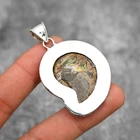 Secondary Stone:No StoneCut Grade:N/AMain Stone Creation:NaturalNumber of Diamonds:N/AColored Diamond Intensity:N/ATheme:Beauty, Bohemian, Ethnic, Halloween, Love, NatureDiamond Color Grade:N/AOccasion:Anniversary, Birthday, Christening, Christmas, Engagement, Father's Day, Mother's Day, Valentine's Day, WeddingBrand:HandmadePendant Shape:OvalPendant/Locket Type:Same As PictureFeatures:HandmadeCountry of Origin:IndiaNecklace Length:1.96"Setting Style:Same As PictureMaterial:GemstoneDiamond Clarity Grade:N/AMain Stone Shape:Same As PictureMain Stone:Ammonite FossilNumber of Gemstones:1Metal:Sterling SilverColor:SilverClosure:Same As PictureCollection:HandmadeBase Metal:Sterling SilverChain Type:N/AStyle:PendantMetal Purity:925Main Stone Color:BrownCountry/Region of Manufacture:IndiaMain Stone Treatment:Not EnhancedType:PendantTotal Carat Weight:10 carat and aboveCertification:N/A