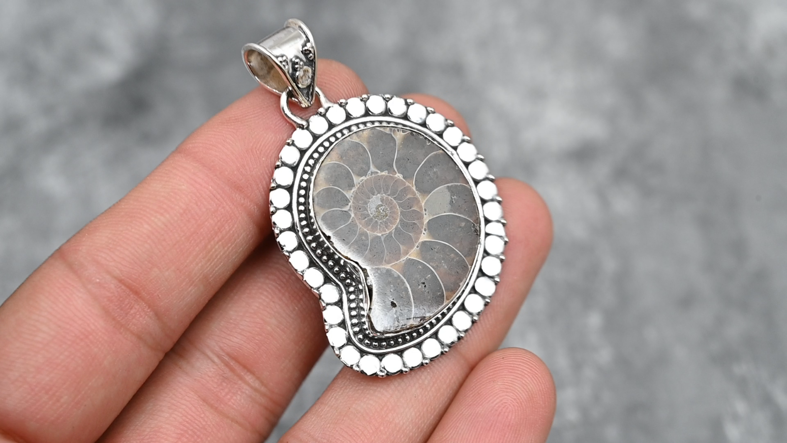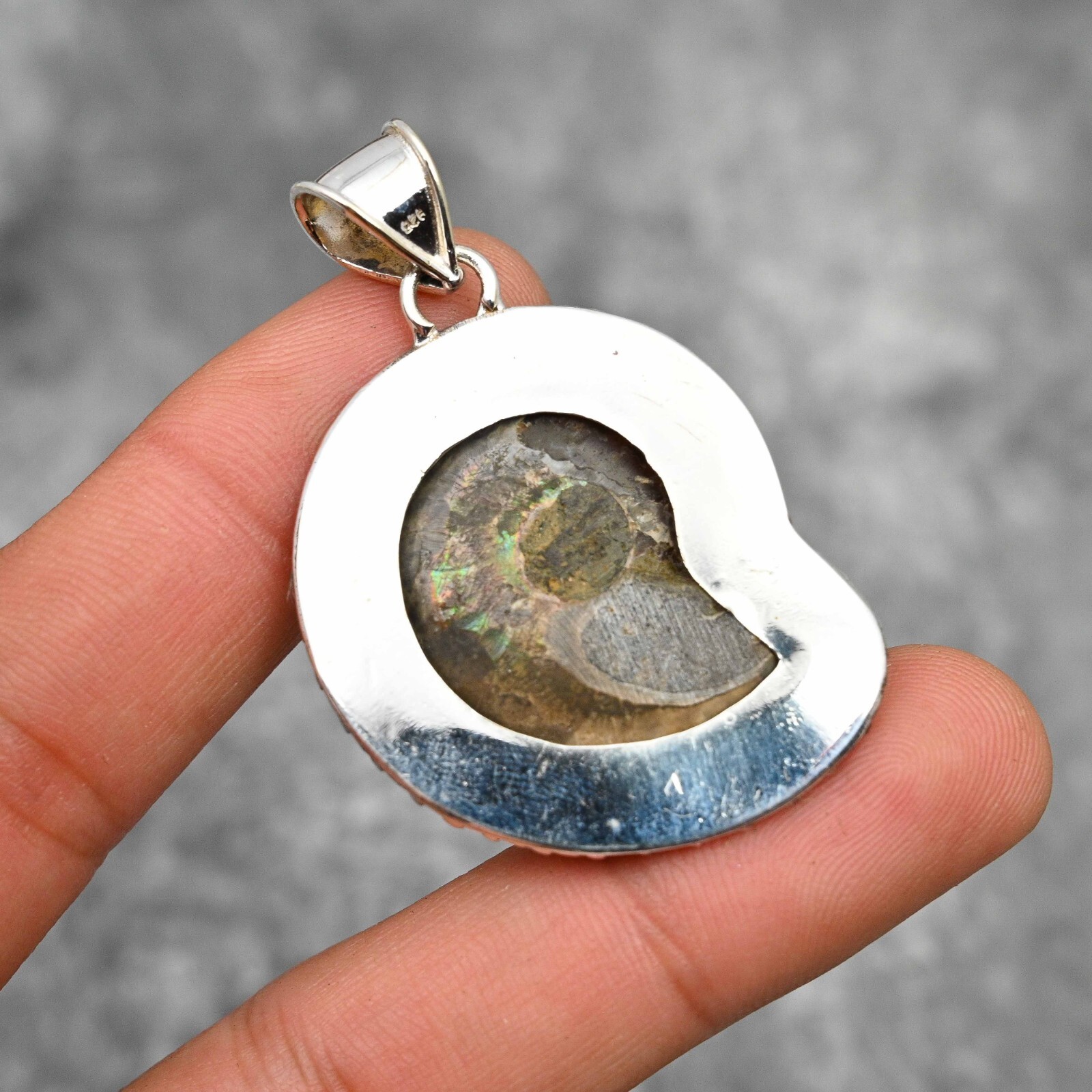 HomeAmmonite Fossil Pendant in 925 Sterling Silver Handmade Jewelry Gift