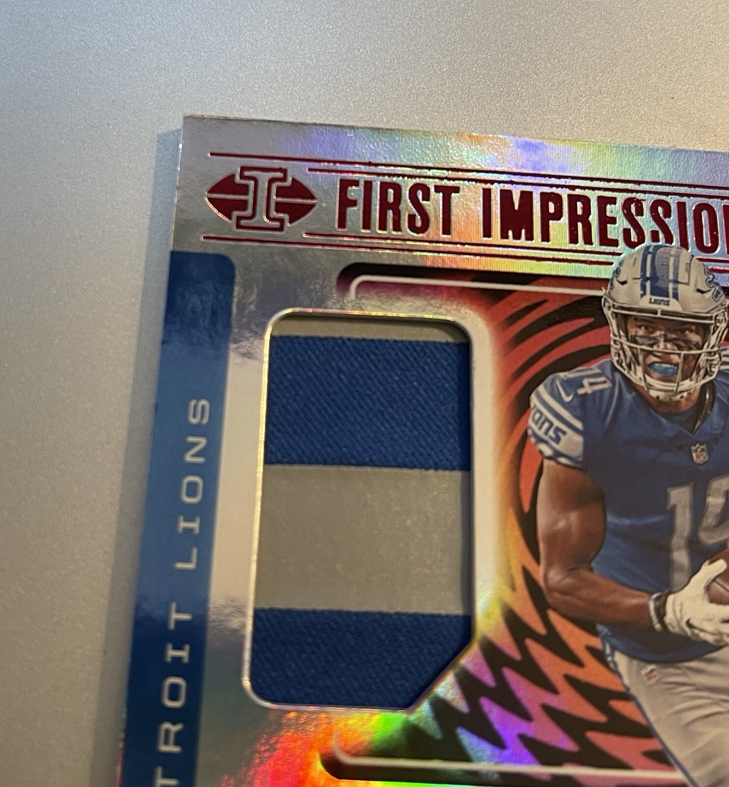 Elevate your collection with the Amon-Ra St. Brown 2021 Panini Illusions First Impressions Autographed Card, limited to just 99 copies. This exclusive rookie card captures the burgeoning career of the All-Pro standout. Crafted by renowned manufacturer Panini, this card is a must-have from the 2021 Illusions set, showcasing the talent and potential of Amon-Ra St. Brown. Whether you're a dedicated Detroit Lions fan or a passionate collector of sports memorabilia, this card is a perfect addition to any collection.