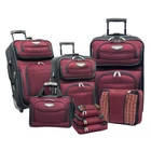 Description Travel in style with this Amsterdam II 8-piece luggage set. The set is made of 1200 D 2-tone polyester. Each suitcase features expandability, telescopic handle system, recessed inline skate wheels, add-a-bag strap, and full interior lining. The travel tote bag has adjustable shoulder strap with padded handle. The packing cubes have solid matte finished metal pulls that make opening and closing easy. Mesh top panel is great for easy identification of contents and ventilation. The soft mesh won't damage your delicate fabrics. Dimensions: large suitcase 29 inches high x 17 inches wide x 10 inches deep (expands to 12 inches deep). Medium suitcase 25 inches high x 15 inches wide x 9 inches deep (expands to 11 inches deep). Small suitcase 21 inches high x 13 inches wide x 7.5 inches deep (expands to 10 inches deep). Travel tote: 15 inches high x 11 inches wide x 6 inches deep. Extra-large packing cube: 15 inches high x 12.5 inches wide x 4 inches deep. Large packing cube: 13 inches high x 10.5 inches wide x 4 inches deep. Medium packing cube: 11 inches high x 7.5 inches wide x 4 inches deep. Small packing cube: 9 inches high x 6.5 inches wide x 4 inches deep. Deluxe set includes four packing cubes to help organize your belongings while offering luxury and durability Luxurious superior two-tone polyester fabrication with PVC backing , Deluxe internal retractable push-button handle system In-line skate wheels with corner protectors, expandable feature on all uprights Multiple front zippered pockets, comfortable top and side carry handles, bag clasp for toting additional bags 29” Upright: 29” H x 17” W x 10” D (expands to 12 in. D); 9.5 lbs., 25” Upright: 25” H x 15” W x 9” D (expands to 11 in. D); 8.5 lbs., 21” Upright: 21”H x 13” W x 7.5” D (expands to 10 in. D); 7.7 lbs.; Travel tote: 15” H x 11” W x 6” D; 2 lbs. Extra-large Packing cube: 15” H x 12.5” W x 4” D; Large Packing Cube: 13” H x 10.5” W x 4” D; Medium Packing Cube: 11” H x 7.5” W x 4” D; Small Packing Cube: 9” H x 6.5” W x 4” D