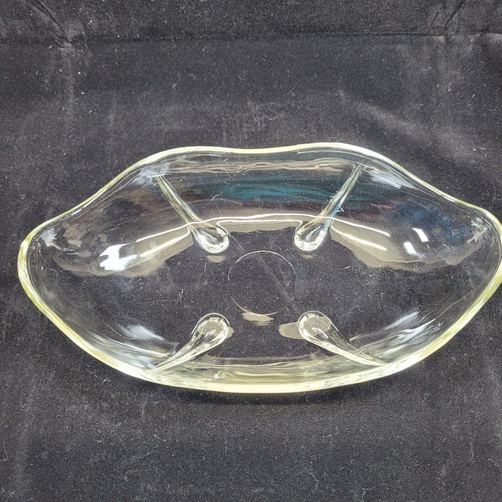 Anchor Hocking Clear Glass Vintage Swedish Modern Footed Relish Dish Wave Edge