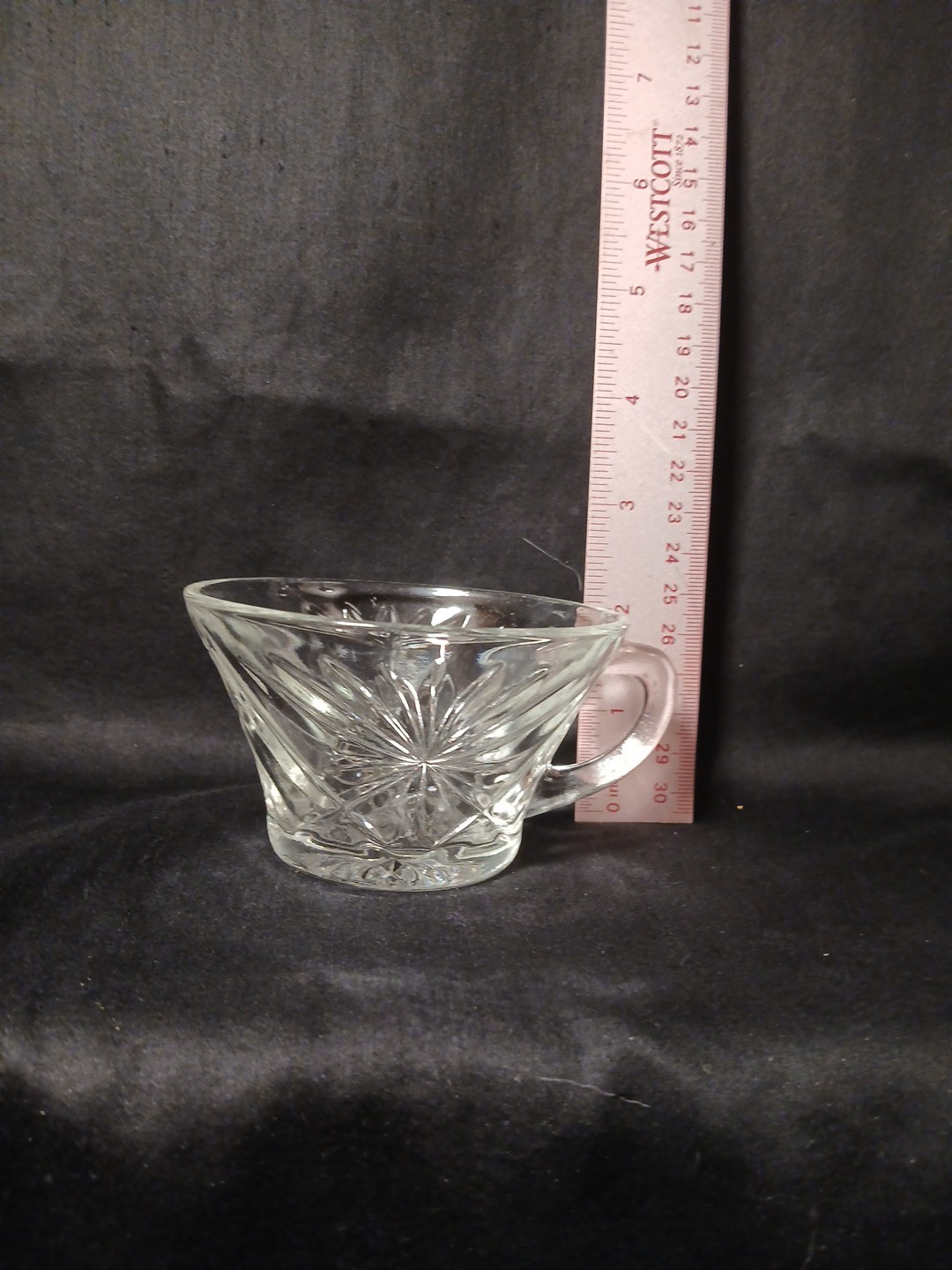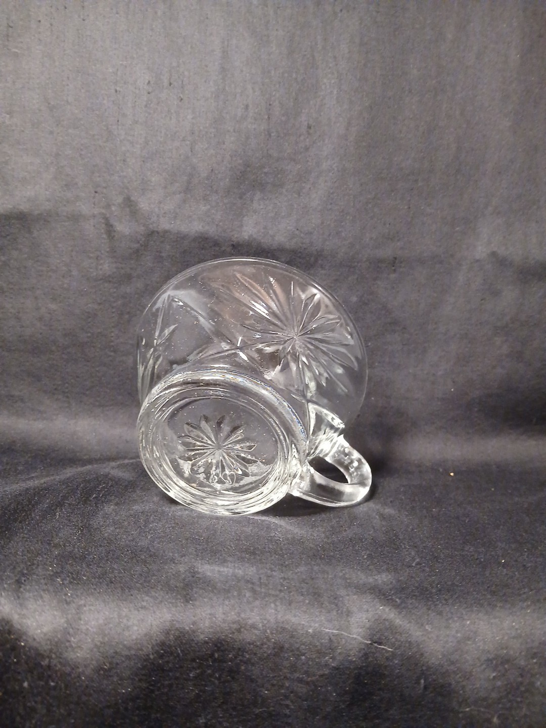 Discover a piece of history with the Anchor Hocking Early American Prescut Punch Cup, adorned with the "Star Of David" etching. Crafted in the 1950s, this mid-century modern cup is a testament to timeless design and craftsmanship. Made from durable glass, it boasts a glossy finish and a clear, vintage pattern that exudes elegance. Perfect for all occasions, this decorative cup measures 2.5 inches in height and 3.75 inches in diameter, making it a substantial yet fitting size for your favorite beverages. It is a genuine original, proudly manufactured in the United States, and features the impressed backstamp authenticating its Anchor Hocking heritage. Care is a breeze, too—machine washable and dishwasher safe, this cup combines convenience with its stunning decorative appeal.