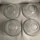 Enhance your dining experience with this set of four Anchor Hocking Glass Olivia- Isabella cereal and soup bowls. The bowls have a unique dotted rim design that adds a touch of elegance to any meal. Made of clear glass, these bowls are perfect for all occasions and can be used to serve a variety of dishes, including soups, salads, and cereals. Crafted using pressed glass production style and fused glass production technique, these bowls are durable and long-lasting. The round shape and 6.5-inch diameter make them ideal for everyday use. This vintage set was produced in the 1980s in the United States and weighs 5.1 lbs total. Don't miss out on adding this decorative and functional bowl set to your collection. Excellent condition. No chips or cracks.