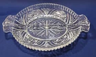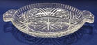 The Anchor Hocking Relish Dish is a vintage Mid-Century Modern piece from the 1960s, featuring a unique Thousand Line Stars & Bars pattern in clear pressed glass. This oval dish has two compartments, making it perfect for serving various condiments or snacks. It has handles for easy carrying and a glossy finish, adding to its charm. The item is part of the Early American Prescut/EAPC product line and was made in the United States, showcasing American craftsmanship in a classic design. It is recommended to hand wash only to preserve its original quality.