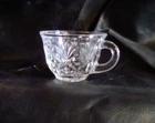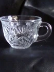 This product is a lot of four Anchor Hocking STAR OF DAVID punch cups made of clear glass with a starburst pattern. Each cup has a round shape, a 2-inch height, and a 3.5-inch width. These pressed glass cups are perfect for all occasions and can serve up to four people. The brand, Anchor Hocking, is known for its quality glassware, making these cups a stylish and practical addition to any kitchen or dining table.