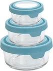Description INCLUDES: This Anchor Hocking glass storage set contains (1) 2-cup, (1) 4-cup, (1) 7-cup round food storage containers with airtight mineral blue TrueSeal lids. DURABLE: This glass food storage container set is microwave, pre-heated oven, refrigerator, freezer, and dishwasher safe; airtight lids are BPA Free and top rack dishwasher safe. SAFE: Anchor Hocking glass is healthier than plastic and metal. It will not warp, stain, retain smells, or leach dangerous chemicals into food or drinks. FIVE-YEAR : Backed by a protective limited five-year , these glass meal prep containers promise to impress for many years to come. Glass is pre-heated oven safe up to 425 degrees F. Our tempered tough glass is also microwave, freezer, and dishwasher safe, and is up to 100% stronger than regular glass. True seal a glass food storage containers help protect the flavor of food and will not stain or absorb odor - they are also stackable and nestable for easy storage. True seal a lids are designed to prevent spills and leaks, and lock air out while sealing freshness in. Anchor Hocking glass is made in USA.