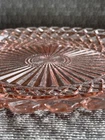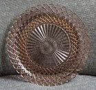This beautiful 14-inch round cake plate is a stunning addition to any collection. The delicate pink Waterford/Waffle pattern is a true testament to the quality of Anchor Hocking's depression glass. This plate is perfect for all occasions and is sure to impress your guests. Crafted in the United States during the mid-century modern period, this licensed reproduction plate features a glossy finish and decorative design. While not an antique, it has the vintage charm of a bygone era and is sure to be a conversation starter. Add this plate to your collection of decorative cookware, dinnerware, and serveware today.