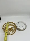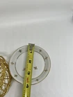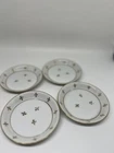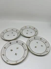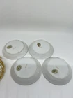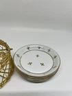 The Andrea by Sadek Vintage Porcelain 'Fleur De Lis Coasters/Nuts/Butter Pats Set of 4 is a delicate and elegant addition to any room. Made in Japan, this set features a white and gold color scheme with intricate Fleur de Lis pattern and gold accents. Measuring 8 inches in length, 10 inches in height, and 5 inches in width, these vintage-style coasters are perfect for all occasions and come numbered for authenticity. Ideal for adults, the set includes four pieces for use as coasters, butter pats, or for serving nuts, adding a touch of sophistication to your decor.
