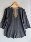 Coeur de Vague Top Womens XL Flowy Black White Polka Dot Ruffle Button Pullover