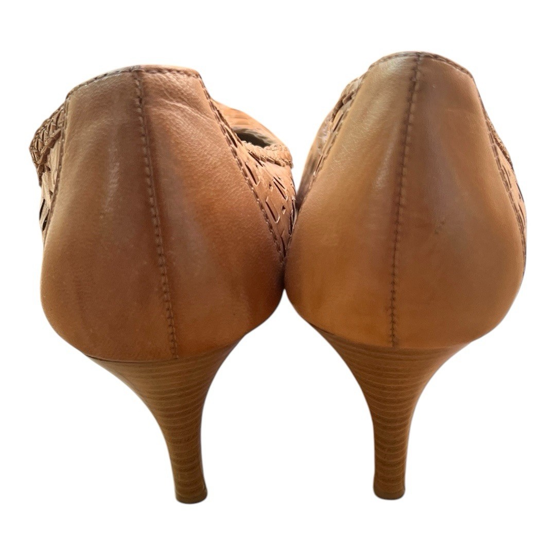 Andrew Geller "Girly" Tan Braided Luggage Women's Heels Stiletto Pumps Sz 7.5 Brand: Andrew Geller Size: 7.5 Condition: pre-owned. Good condition Brown Braided design Upper leather Round toe 3.5” Heel